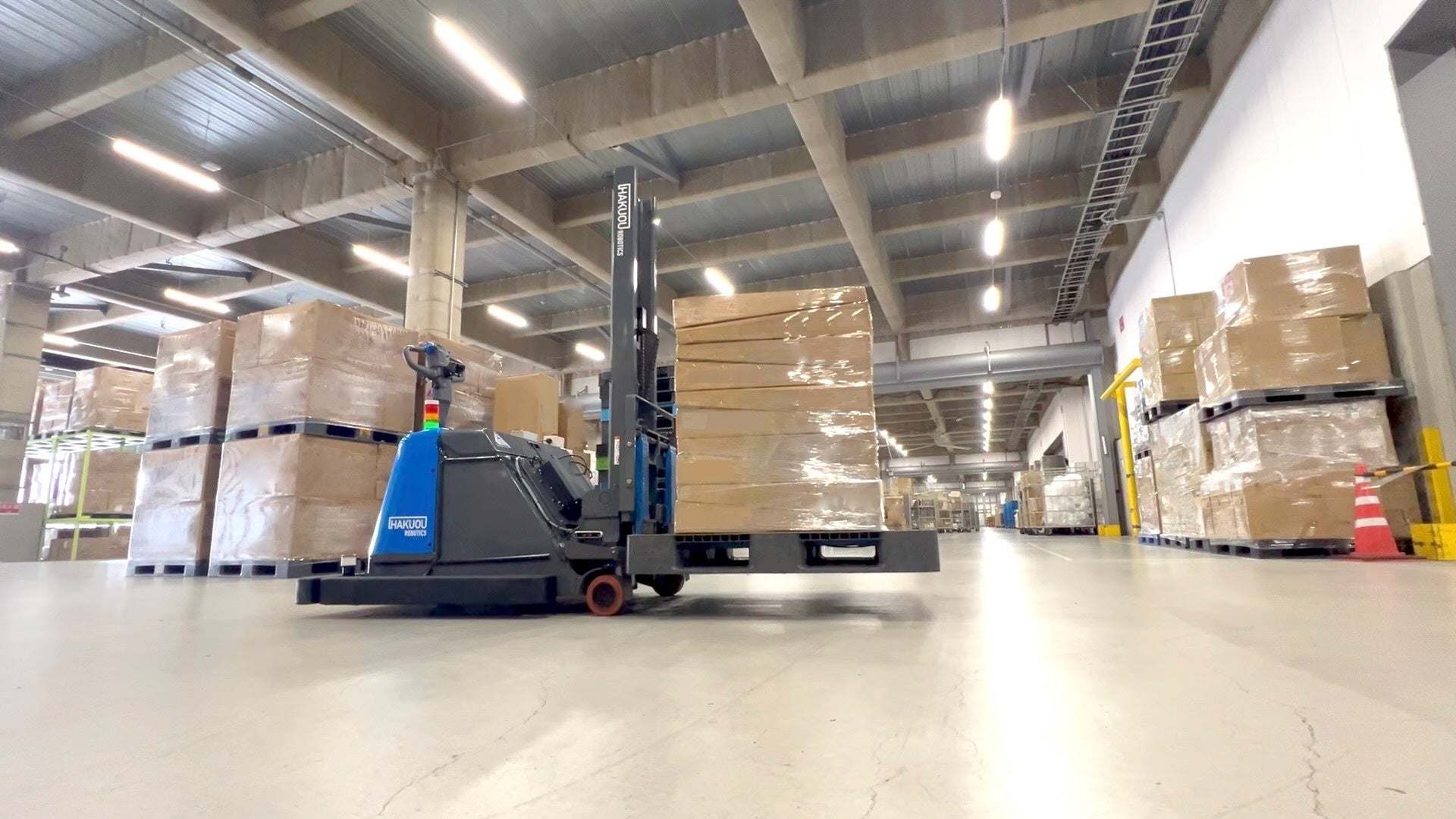 ハクオウロボティクス 自動フォークリフト「AutoFork」パレット一括認識と110mの自動搬送を日本ロジテム 稲沢営業所で実証