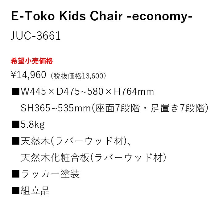 「E-Tokoダイニング学習椅子」は、子どもの姿勢に焦点を当てて開発した子ども用ダイニング椅子であり、15年以上販売を続けるロングセラー商品です。