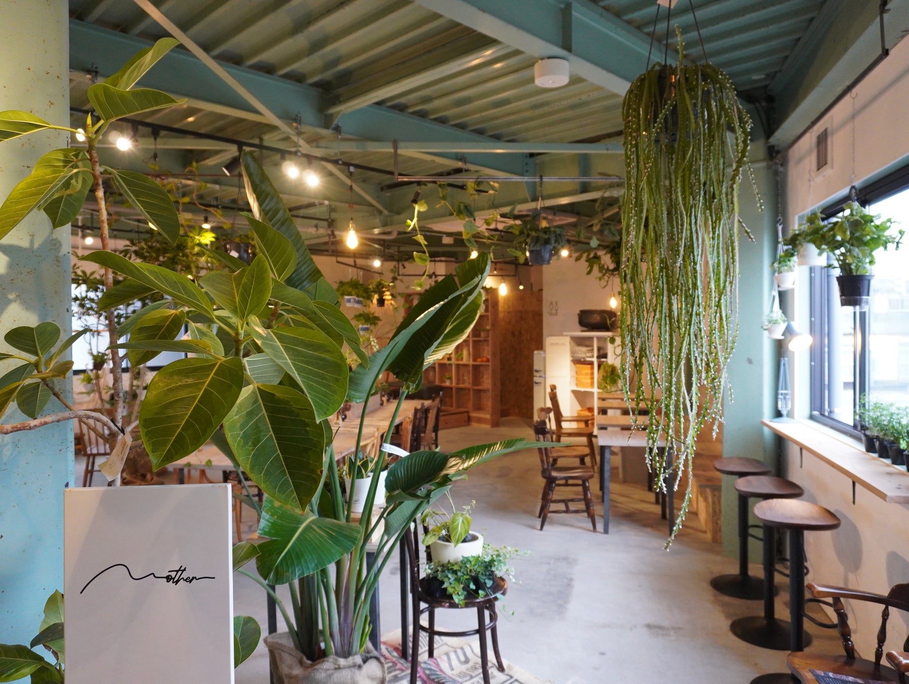 カフェ「Mother」は、DIYで作り上げられた温かみのある店内では、たくさんの観葉植物がレイアウトされており、リラックスできる雰囲気の中さまざまなアート体験も楽しめる『体験型カフェ』としても運営しています。