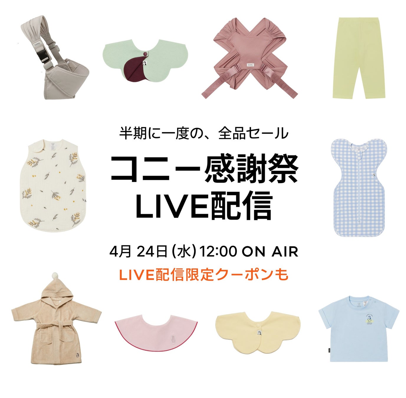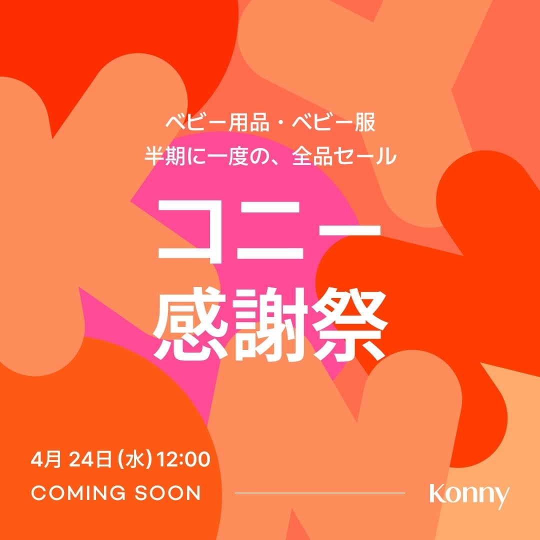 コニー感謝祭URL: https://konnybaby.jp/collections/konny-bigsale (4/24(水) 12:00オープン)