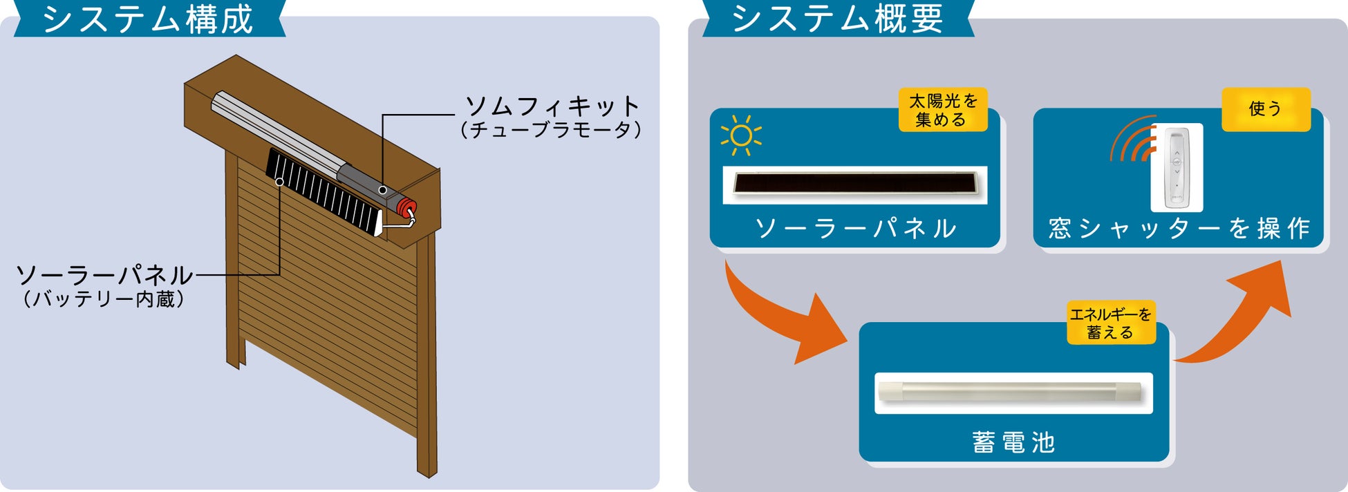 太陽光蓄電式手動窓シャッター電動化キット「ソムフィ ソーラーキット」を発売