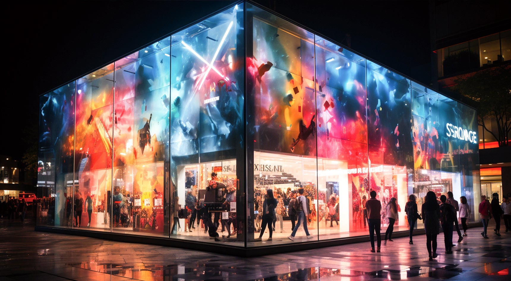 巨大な窓ガラス面を空間演出メディアに!「透過型フィルムLEDビジョン」「透過型メッシュLEDビジョン」販売開始!