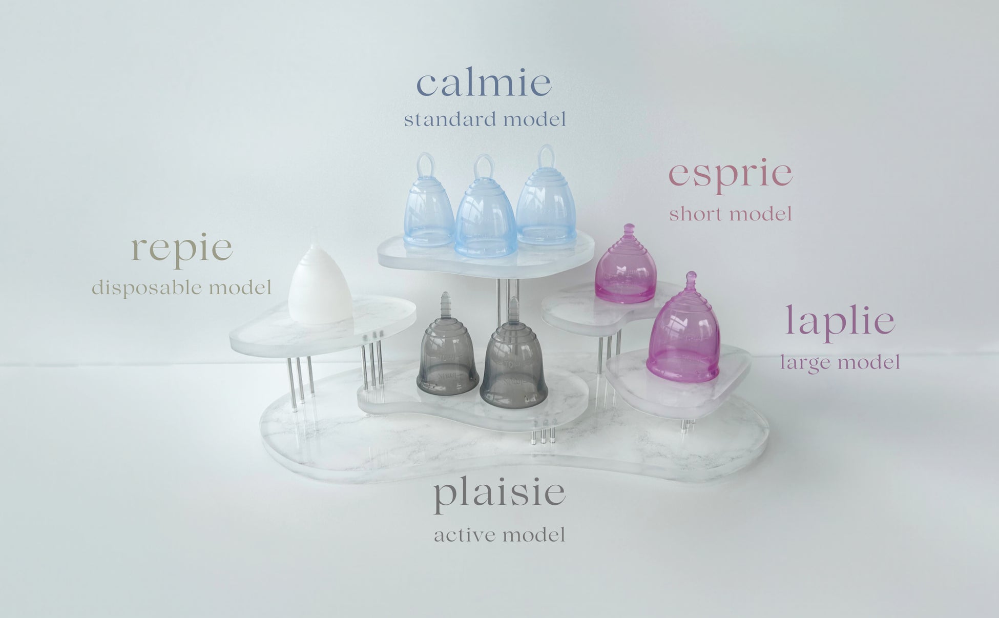 5モデル全8種のラインナップをそろえています。ベーシックモデル、アクティブモデル、大容量モデル、ショートモデル、使い捨てモデル(※)の中から、使用シーンやからだによって自分のベストを選んでいただける、今までにあまりなかった月経カップです。