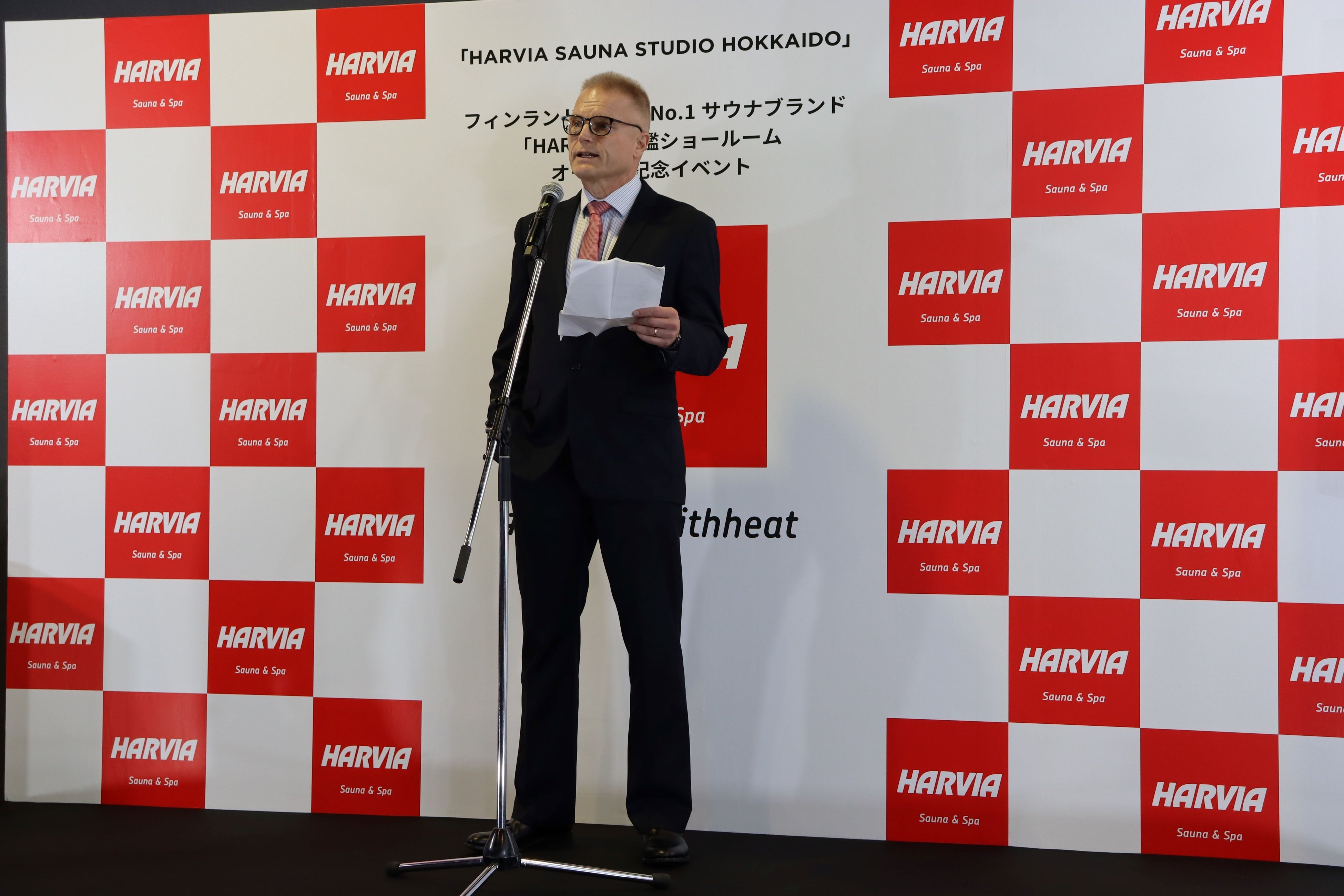 サウナ大国フィンランドのサウナビジネスをリードするハルビアの札幌旗艦店のオープンおめでとうございます。この記念すべき日を迎えられたのは、フィンランド企業のビジネスサポートをする立場からはもちろん、生後10ヶ月からサウナに入っており、実家のサウナでハルビアを愛用している者としてもとてもうれしく思っています。