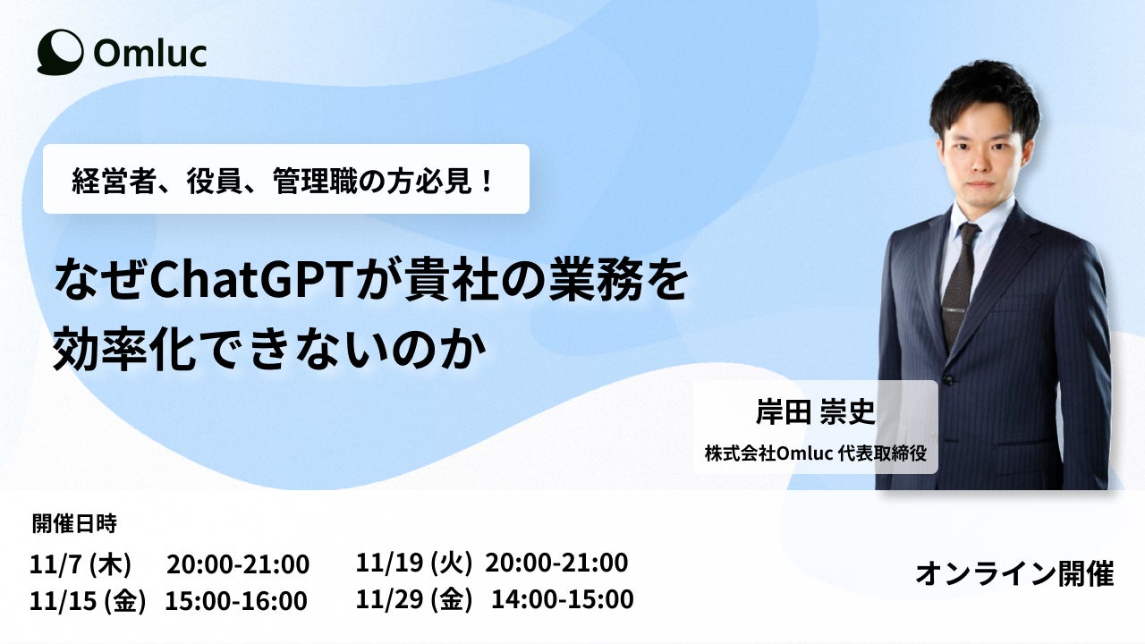 株式会社Omluc、経営者・役員・管理職向けウェビナー「なぜChatGPTが貴社の業務を効率化できないのか」参加申し込み受付開始