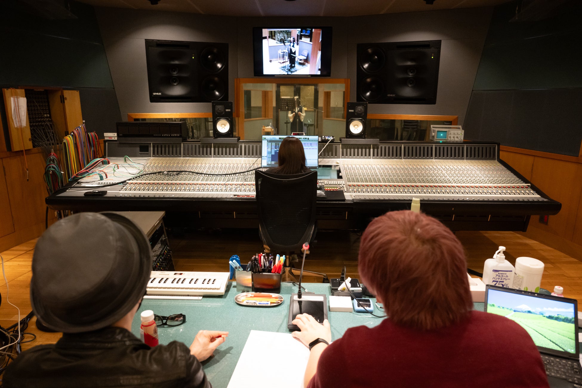 好きなジャンルやイメージなどの要望をふまえ、プロの作曲家に依頼。複数の候補曲から好きな1曲を選びます。歌詞は作詞家に依頼するか、アドバイスを受けながら自作します。作詞・作曲が完成したのち、大手レコード会社のスタジオなどプロが使うスタジオでレコーディングをし、メジャーアーティストと同じ専用の機材を使ってエンジニアが音量や音程なども細かく編集します。CDジャケットや歌詞カードの撮影もプロのフォトグラファー、ヘアメイク、スタイリスト、デザイナーがチームとなって担当。完成したCDは基本料金で1千枚プレスされ、売ることも配ることもSNSにアップロードすることも自由にご利用いただけます。楽曲は「JOYSOUND」に登録され、カラオケで歌うこともできます。カラオケの画面表示の歌手には、自分の名前がアーティスト名として表示されます。また、オプションで楽曲を用いたミュージックビデオも作成することもできます。