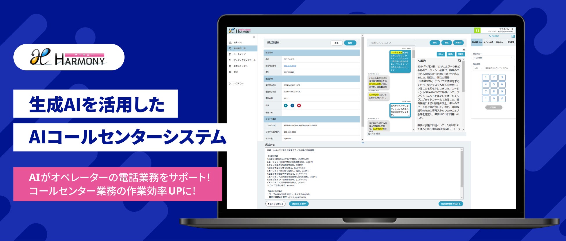 生成AIを活用した次世代クラウド型コールセンターシステム「HARMONY Ver1.01」をリリース!AI機能が大幅に強化され、コールセンター業務における生成AIの活用が広がります。