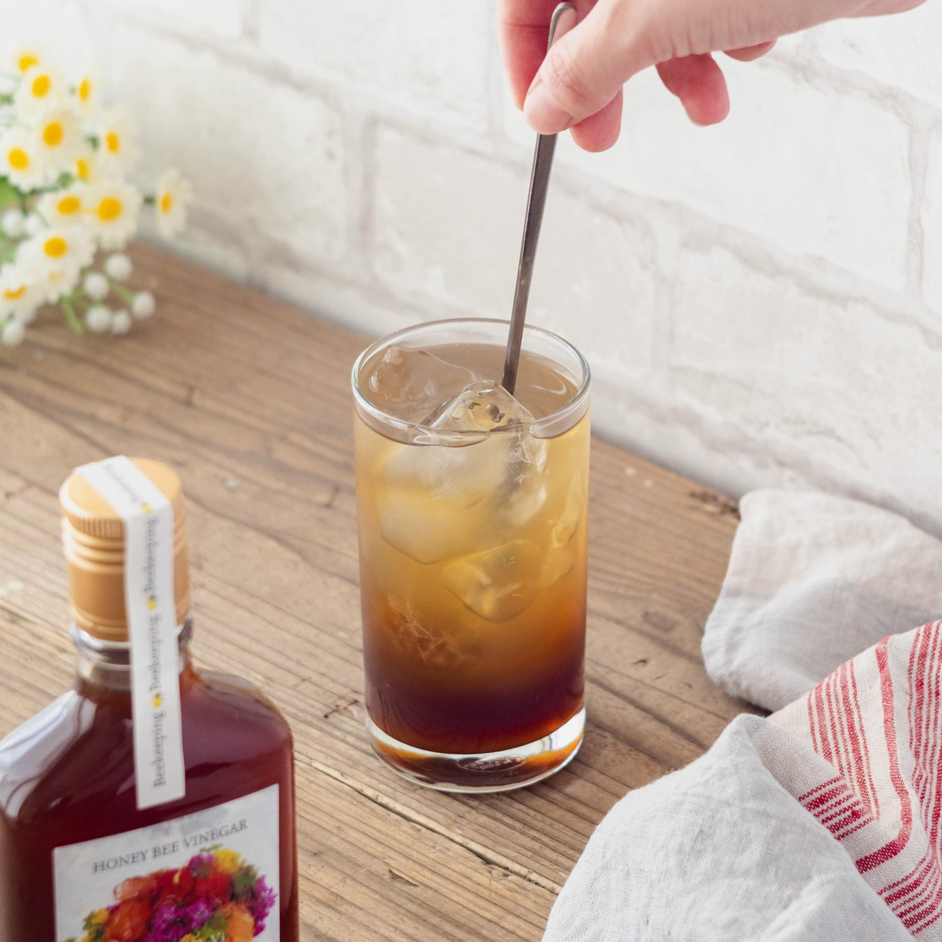 ハニービィヴィ1に対して、水を3〜5の割合などで、お好みでご調整ください。今話題のモクテルなどにもご活用いただけるほか、ミントやシナモンなどを添えても美味しくいただけます。