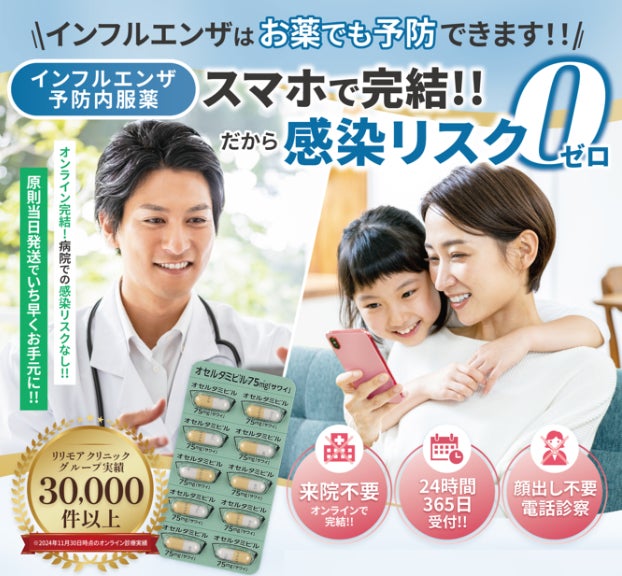 リリモアクリニック、オンラインでの「インフルエンザ予防内服薬」処方を開始、忙しいかた病院で感染が怖い方に向けて