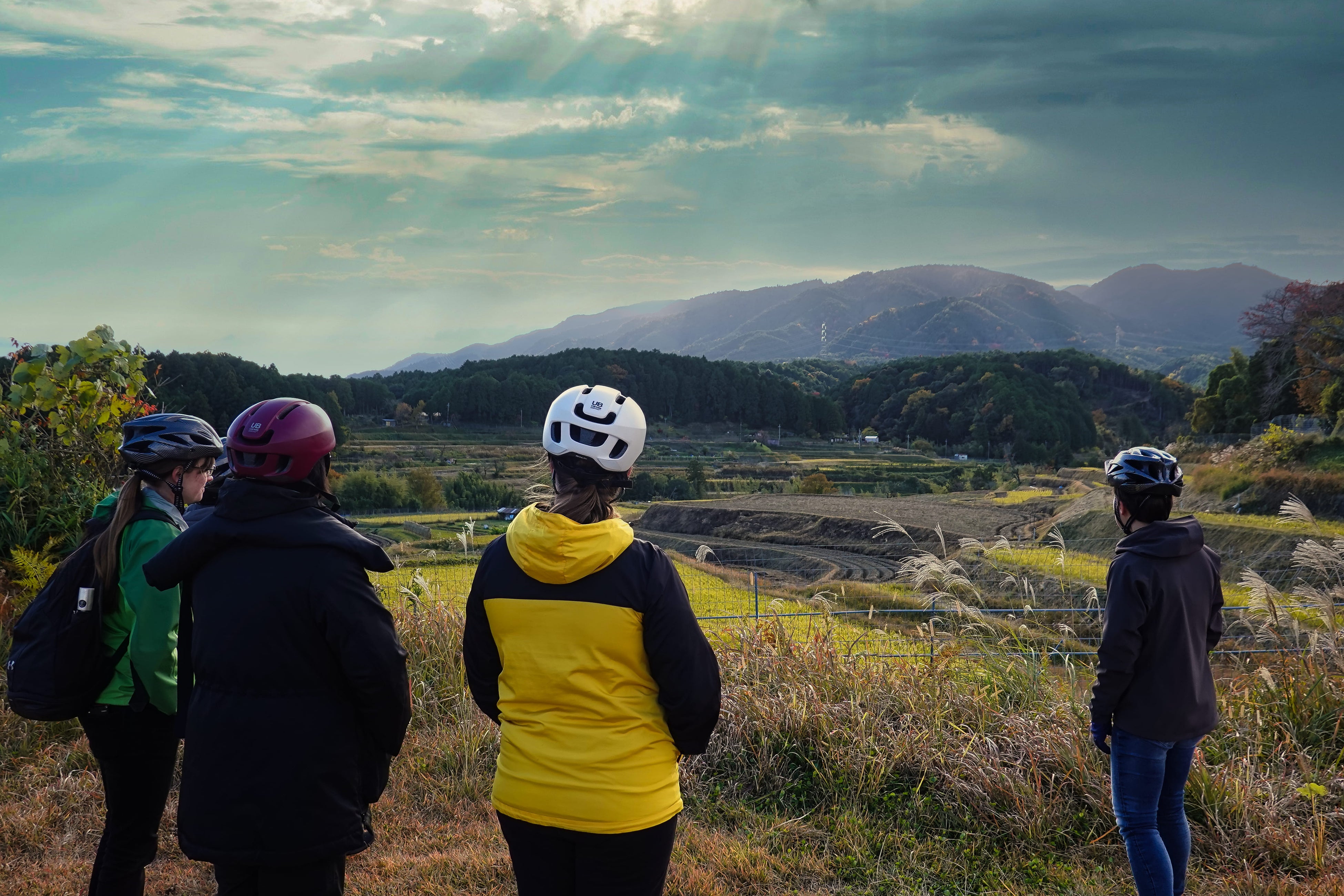 研修2日目は、成安造形大学の加藤教授による里山文化に関する講義が行われました。里山の暮らしには無駄がなく、自然の中で人々が一体となって暮らすという内容となっています。また、講義の題材となった神社や棚田などを実際に自転車で訪問し、里山特有の空気・匂い・雰囲気を5感で楽しむことができます。