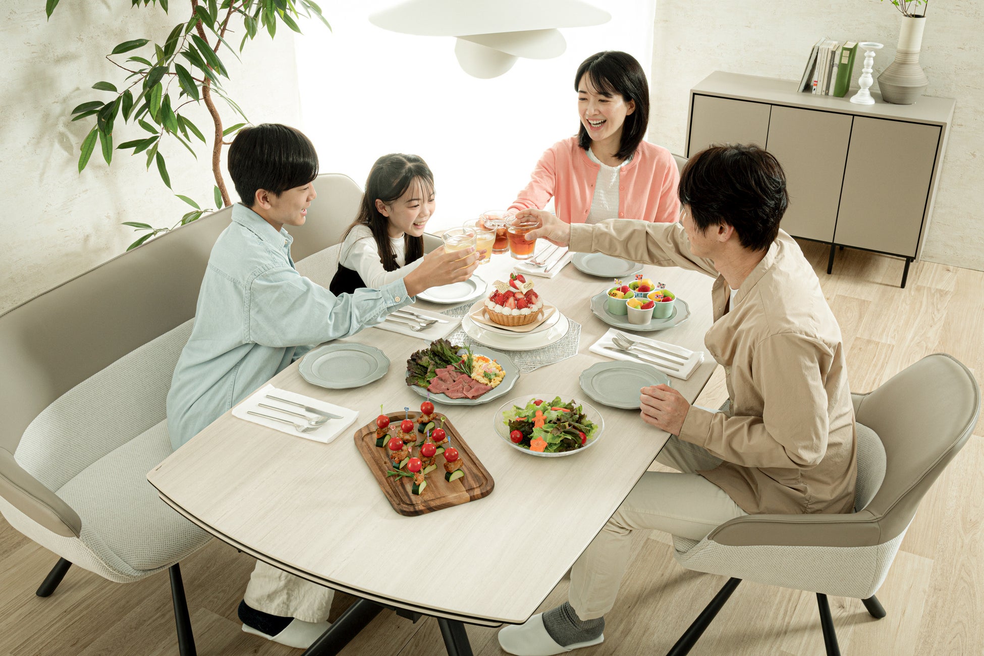 セラミックの美しさ、広がる空間。伸長式テーブルで、もっと自由に、もっと楽しく。