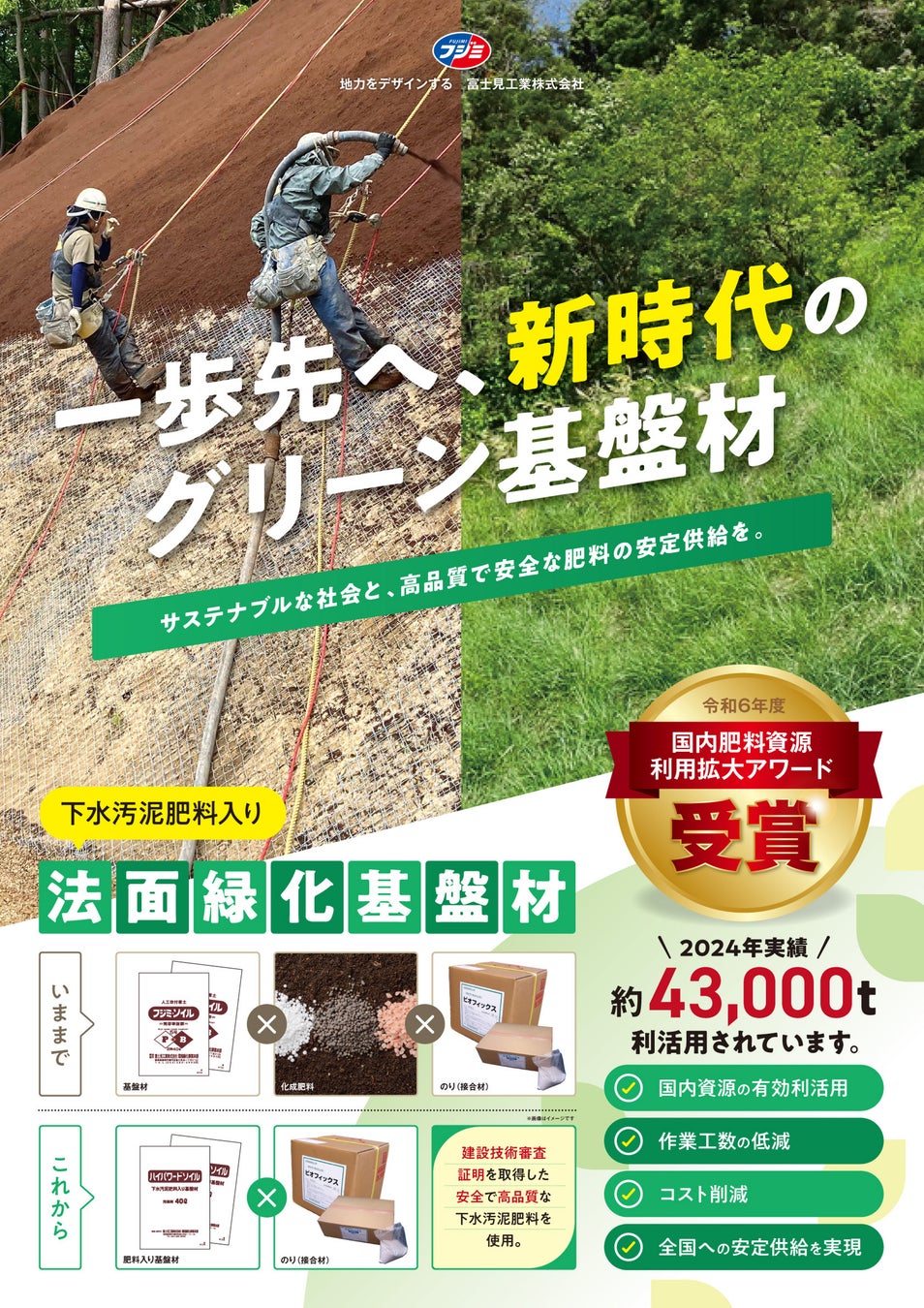 特に施工会社のライト工業様には下水汚泥肥料を公共事業分野で活用を図って頂き、複数の「NETIS登録工法」を共同で開発し、利用範囲を全国に拡大しました。