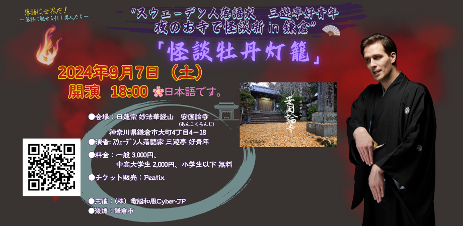 イベント名称:スウェーデン人落語家 三遊亭好青年 夜のお寺で怪談噺 in 鎌倉
