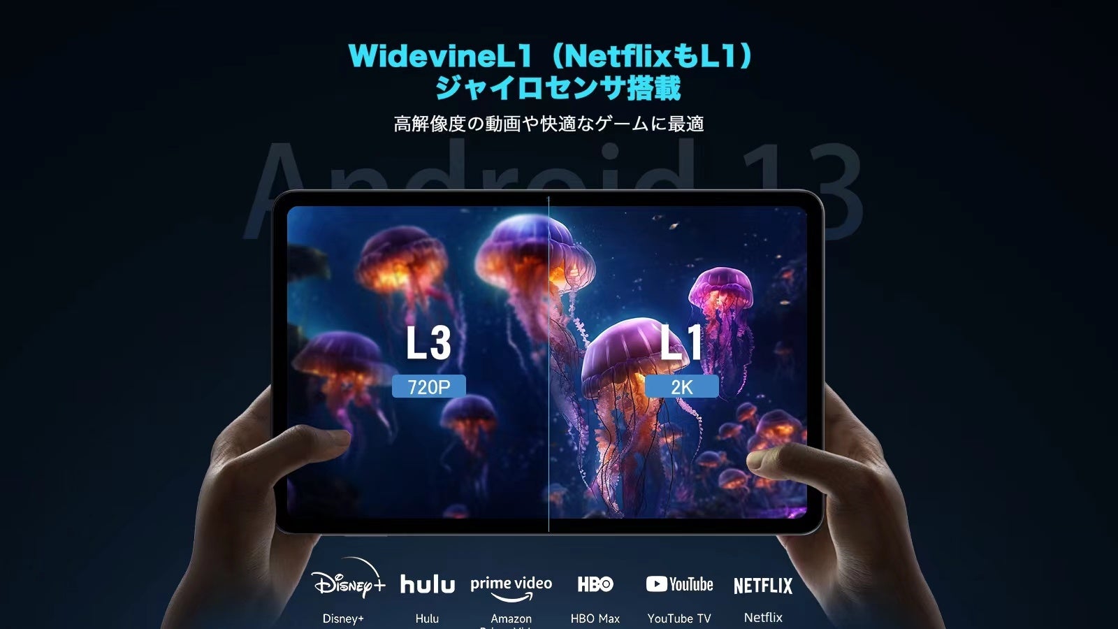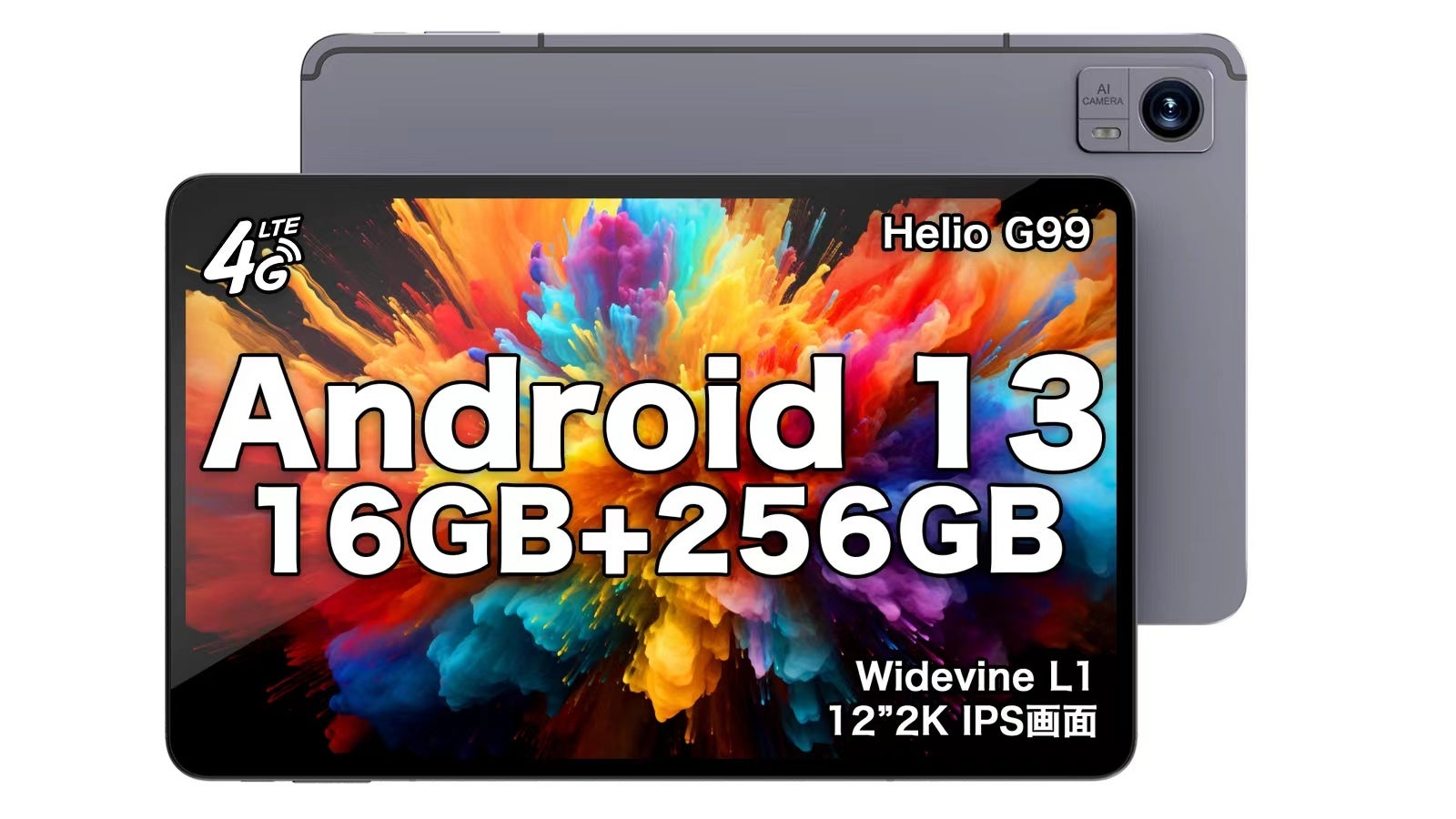 Android 13 /G99タブレット 12インチ、16GB+256GB、2000*1200 2K IPS画面、2.2GHz 8コアCPU、 8180mAh大容量バッテリ、WidevineL1(NetflixもL1) 光センサ及びジャイロセンサ搭載