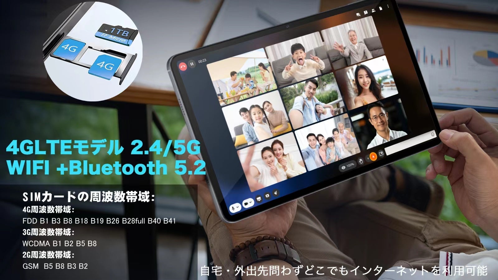 【4G LTE・GPS・Bluetooth 5.2】SIMフリーA90タブレットは高速な2.4GHz/5GHz Wi-FiとBluetooth 5.2を備え、快適なワイヤレス接続を実現します。ワイヤレス投影も対応し、教室のデジタルTVや電子黒板、プロジェクタなどに簡単に接続し、高画質なタブレット画面を映し出すことができます。さらに、4G LTE通信とデュアルSIMカードに対応しており(SIM2はmicroSDと排他)、柔軟な通信オプションを提供します。Wi-Fiのない環境でも4G LTE通信を利用できます。GPS/Beidou/Galileo/Glonassにも対応しており、頼りになる案内者として正確な方向を示します。どこにいても確実に目的地に到着し、自信を持って旅行を楽しむことができます。A90が一台あれば、スムーズなインターネット接続と通信が可能です。
