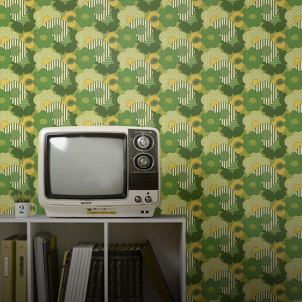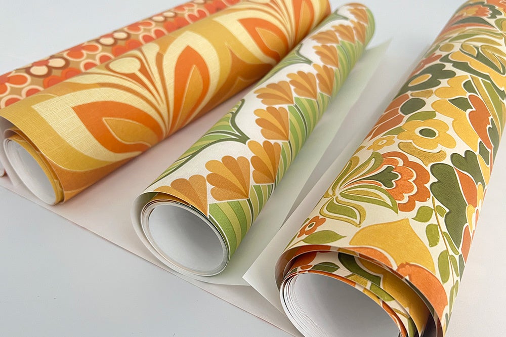 大ぶりの花柄やブーケ、キャンディなどをモチーフにしたレトロな柄や色使いがたまらないビンテージのデザイン。旧西ドイツ、オランダ、ベルギー、イギリス、フランスなど、1950年代 ~ 1970年代の壁紙を復刻したシリーズ。