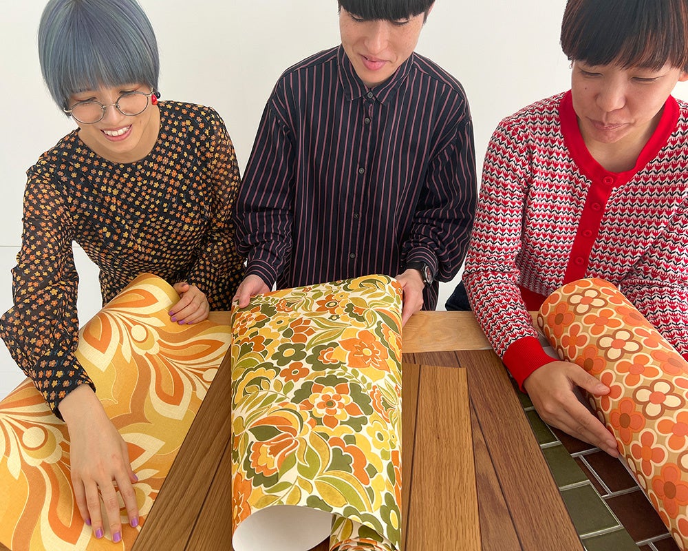 大ぶりの花柄やレトロな色使いが目を引くビンテージ柄、昔ながらの住宅や喫茶店を象徴する木目柄やタイル柄など、知っている世代には懐かしく、知らない世代には新鮮な4シリーズのデザインを展開しています。