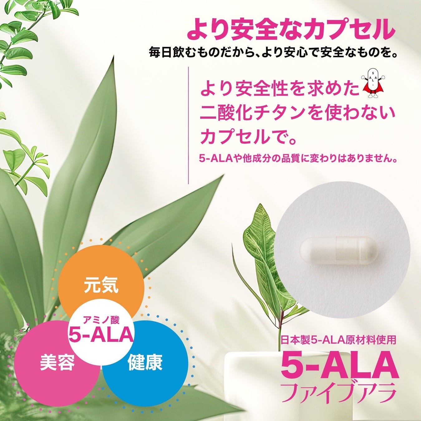 日本製5-ALA原材料使用。カプセルを改良し飲みやすくなりました!