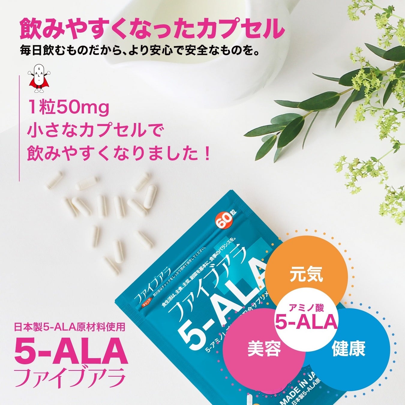 日本製5-ALA原材料を使用し、1粒あたりの5-ALA含有量は50mg!たっぷり60粒封入されています。