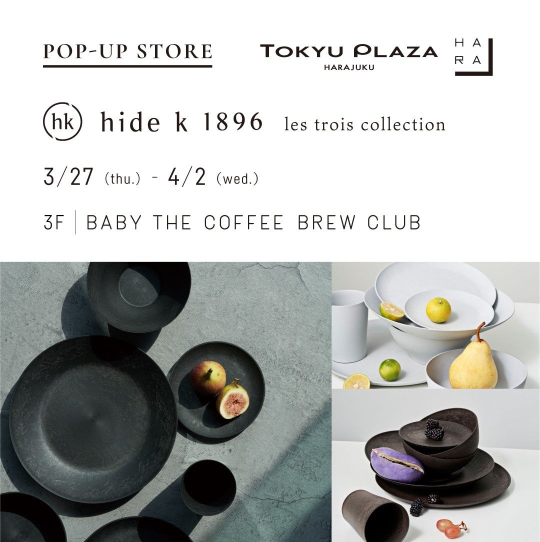 環境調和型プロダクトブランド「hide k 1896®」(創業者 兼 オーナー:春日秀之)の期間限定ポップアップストアを東急プラザ原宿「ハラカド」3F「BABY THE COFFEE BREW CLUB」にて2025年3月27日(木)より4月2日(水)まで開催いたします。「les trois collection(テーブルウェア)」のフルラインナップを取り揃えております。また、特別展示会「TRANSWOOD® with Prasus展® -環境調和型素材の未来-」(三井化学社との共催)で同時開催いたします。