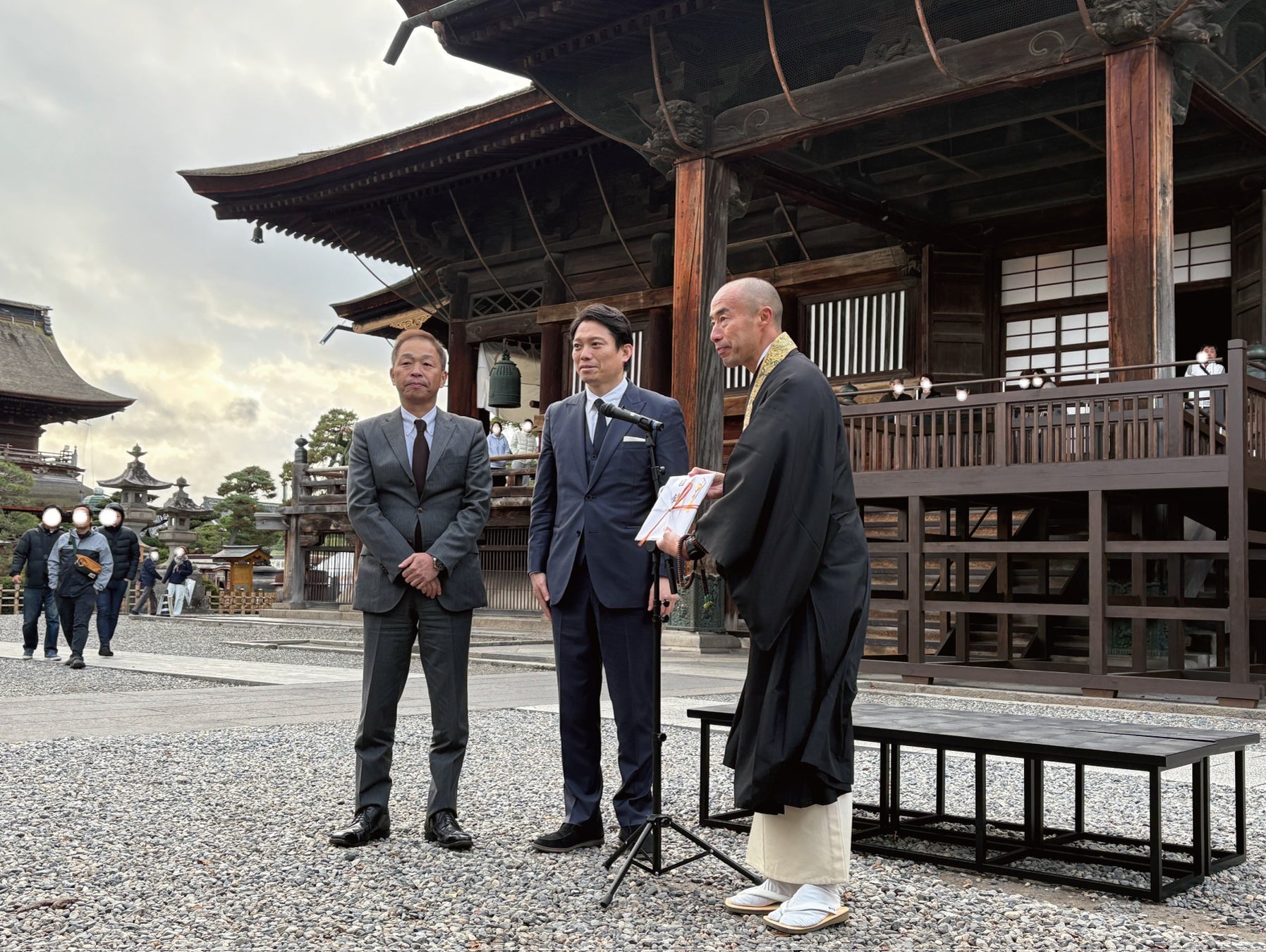 株式会社hide kasuga 1896(本社:東京都、代表取締役:春日 秀之)が主宰するサーキュラ ーエコノミーコンソーシアム「Green Composite Hills by hide k 1896®」によるアップサイ クルプロジェクトにおいて、長野市立東部中学校の生徒が1年間使用した環境調和型素材 TRANSWOOD® with Prasus®製ペンケースが、ベンチにアップサイクルされて善光寺境内 (長野県長野市)に設置されることに伴い、2024年11月18日に式典(アップサイクルベンチ奉納式)が行われました。