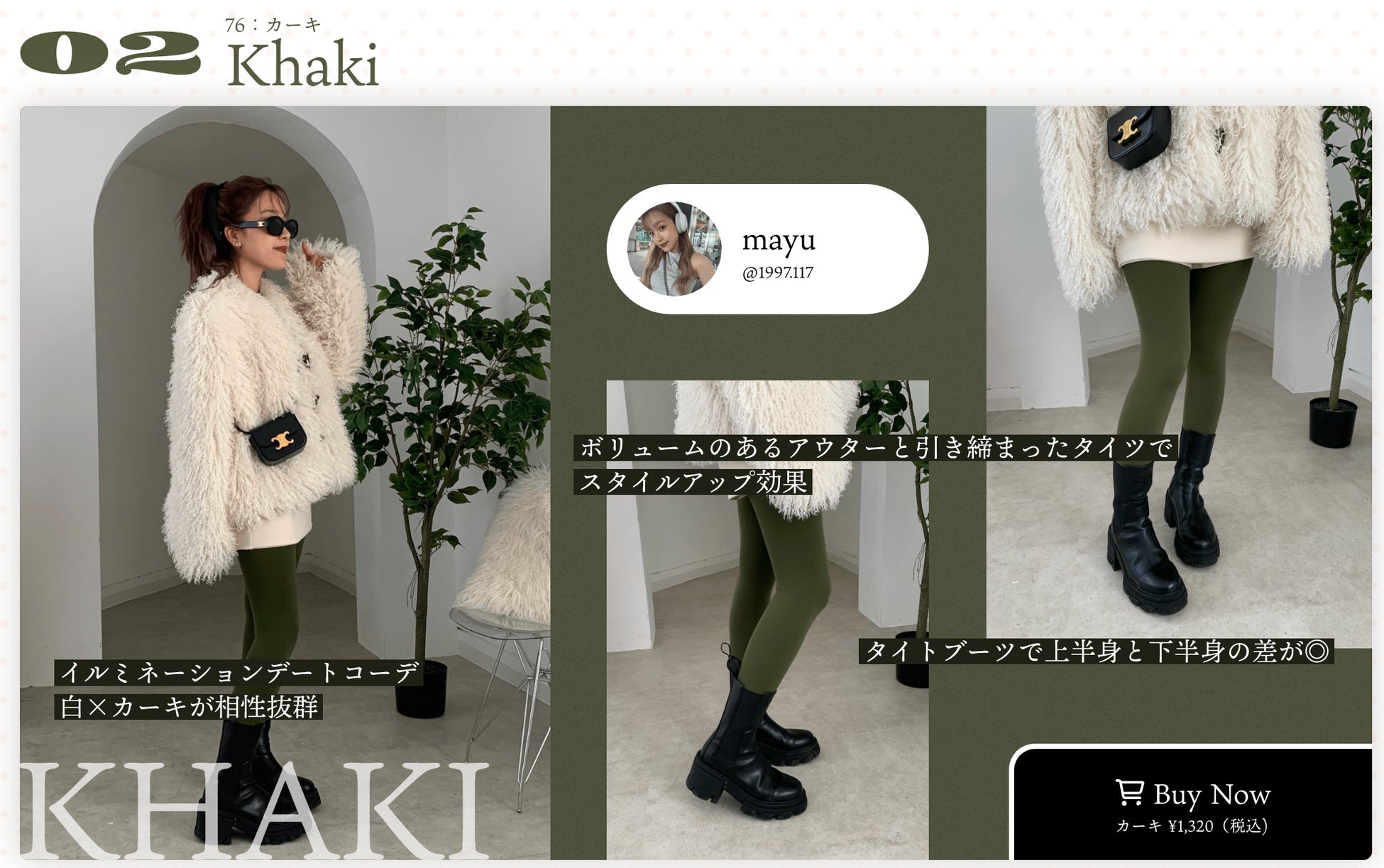 靴下専門店展開のTabio、40色のカラータイツコーデ集を公開。40名以上のインフルエンサーがコーデを提案。