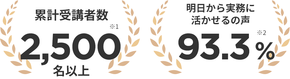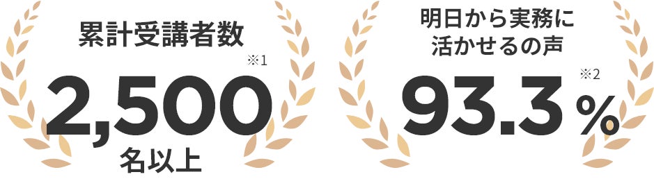 当スクールは2019年の開校以来、累計受講者は2,500名以上(※1)、「明日から実務に活かせる」の声が93.3%(※2)寄せられています。