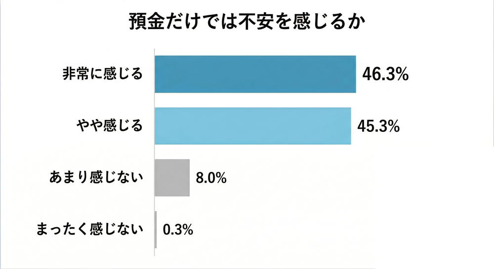 一方で、9割超が「預金だけでは不安」と回答しており、余裕資金があれば約7割が投資を検討するなど、行動と意識の間にギャップが存在しています。