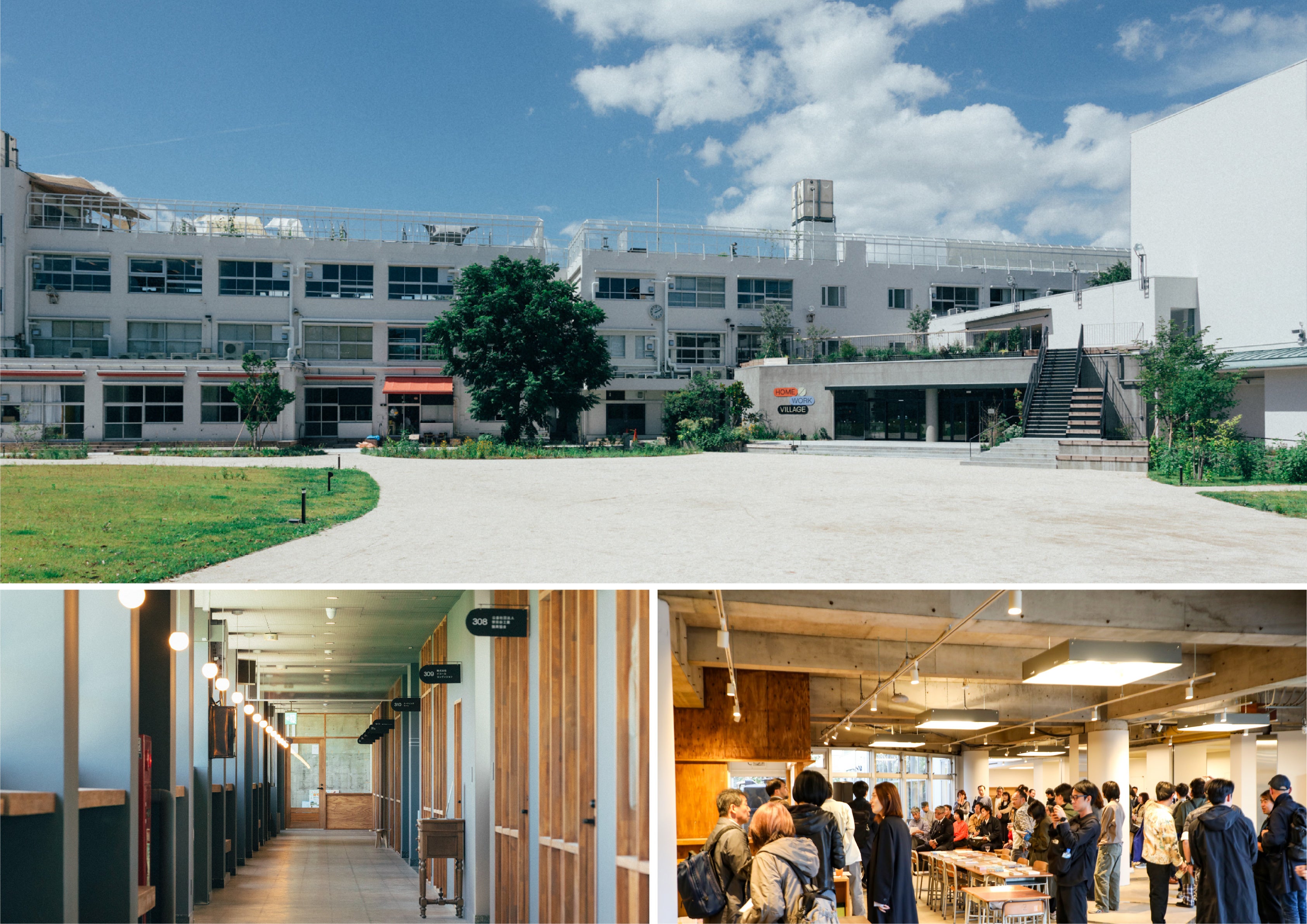 会場となるHOME/WORK VILLAGEは、「暮らし(HOME)」と「仕事(WORK)」を見つめ直し、私たちの社会に残された「宿題(HOMEWORK)」を紐解いていく――というコンセプトのもと、旧池尻中学校を活用してつくられた複合施設です。