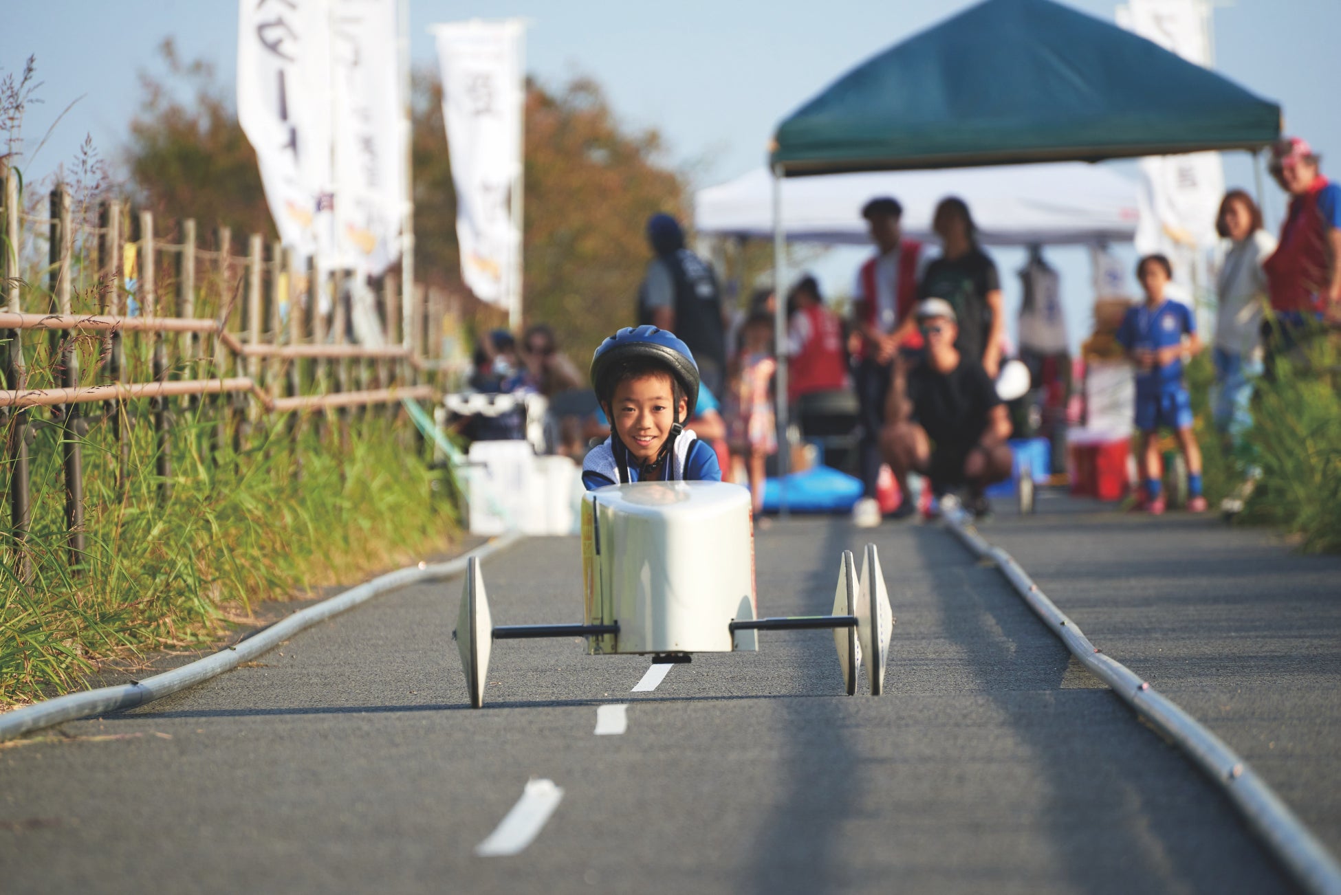 二子玉川の河川敷で繰り広げられるソープボックスダービーは、エンジンを持たない車で重力だけで直線の坂道を下って速さを競い合う、子どものためのカーレース。 “地球のチカラ”ד親子の熱気”で動くハイブリッドカー体験として、ソープボックスカーの乗車体験ができます。子どもたちのはじめてのレーシングカー体験を提供します。