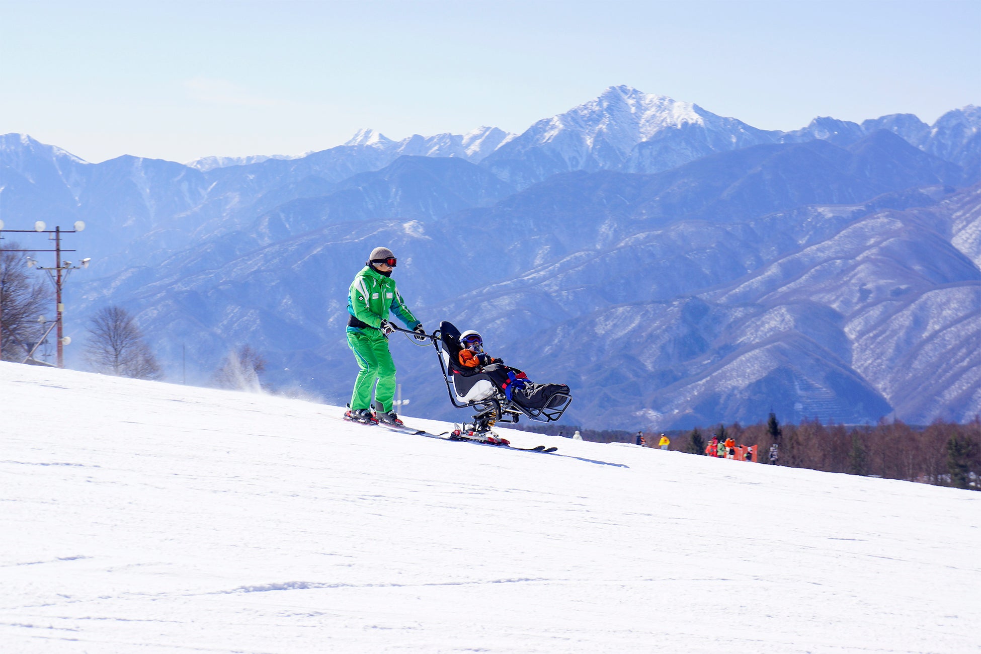 富士見高原スキー場は、「みんなで楽しめるリゾート」を合言葉にハンディーキャップのある方でも雪遊びを満喫できる デュアルスキー、バイスキー、ヒッポを準備しています。