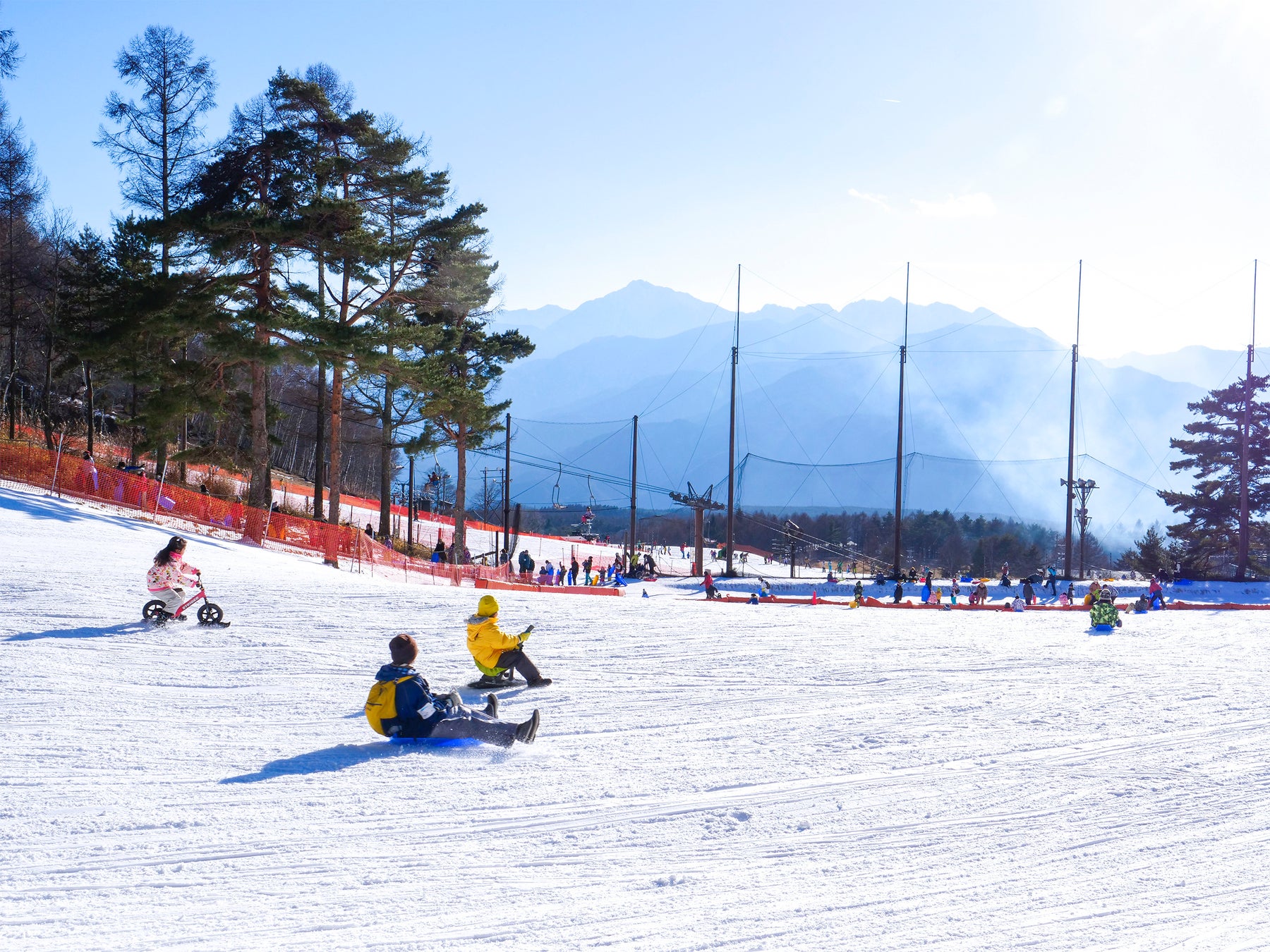 県内最大級の広さを誇るキッズスノーランドはソリや大きなアニマルふわふわ遊具で遊べるほか、ハンディキャップがあってもウィンタースポーツが楽しめるデュアルスキーやバイスキーのレンタルも充実しておりますので、家族みんなで楽しめる富士見高原スキー場へぜひご来場ください。