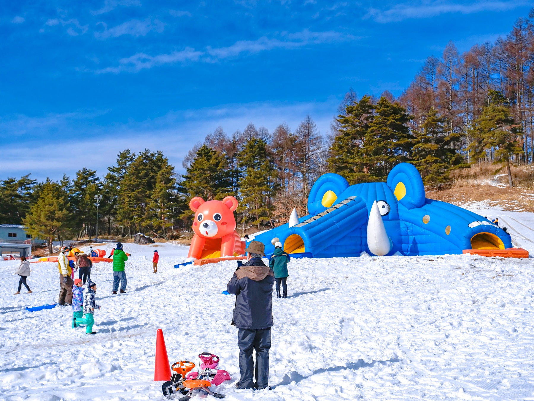 県内最大級の広さを誇るキッズスノーランドはスキーゲレンデから独立した位置にあり、ソリや大きなアニマルふわふわ遊具で小さなお子様も楽しく遊べます。