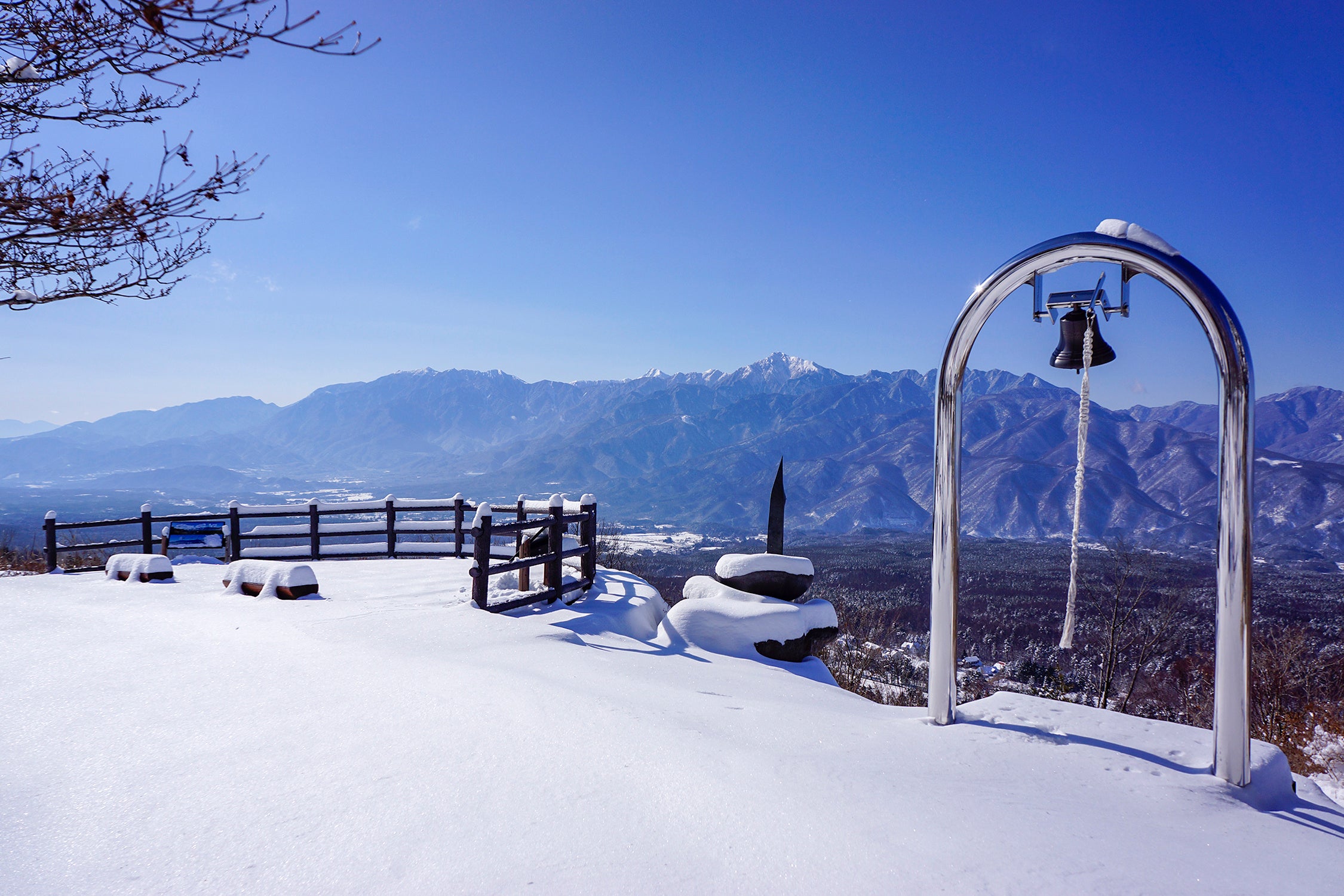 標高1,420mの場所にある「創造の森」からは「富士山」「北岳(南アルプス)」「奥穂高岳(北アルプス)」の日本三大高峰などの山々を眺めることができます。