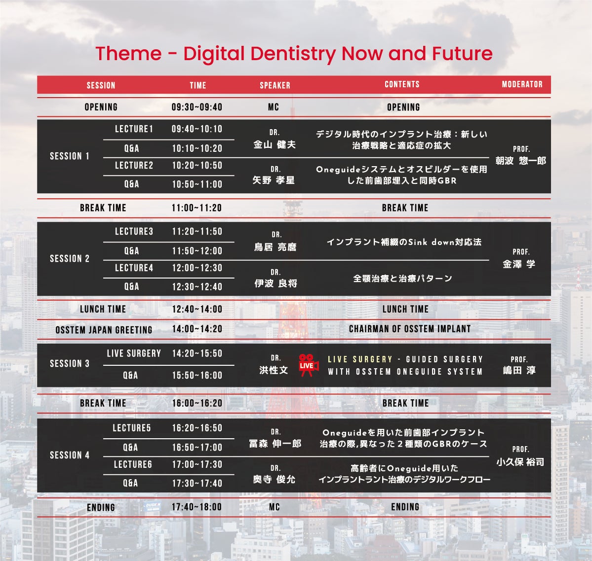 今回のオステムミーティングで最も注目度が高いのは、第3セッションで行われる「ライブサージェリー」です。東京吉祥寺セントラルクリニックの洪性文先生によるオステム・ワンガイドシステムを用いたガイディットサージェリーの全過程を80分間にわたって披露する予定です。