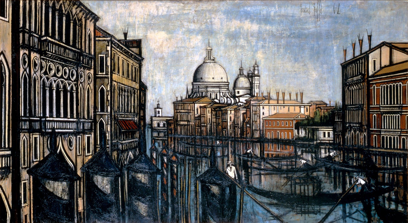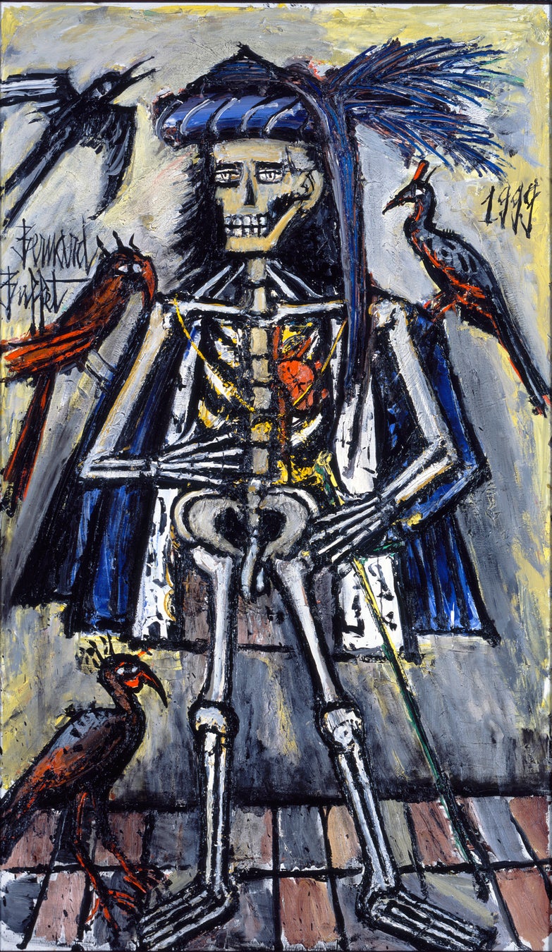 ベルナール・ビュフェ(1928-1999)は、黒い描線と抑制された色彩によって第二次世界大戦後の不安感や虚無感を描出し、世界中の人々の共感を呼びました。その虚飾を排した人物描写は、当時の若者に多大な影響を及ぼしたサルトルの実存主義やカミュの不条理の思想の具現化として映り、ビュフェ旋風を巻き起こしました。具象画壇の旗手となったビュフェはベルナール・ロルジュやアンドレ・ミノーとともに、新具象派あるいはオムテモアン(目撃者)と呼ばれ、1950年代半ばには日本でも頻繁に紹介されました。日本の美術界は抽象画全盛の季節を迎えていましたが、ビュフェの黒い直線と強烈な表現に衝撃を受けた芸術家は少なくありませんでした。以来、半世紀以上の年月が流れましたが、現代のアートシーンにおいてもビュフェの存在感はゆるぎないものとなっています。(ベルナール・ビュフェ美術館ホームページより一部引用)