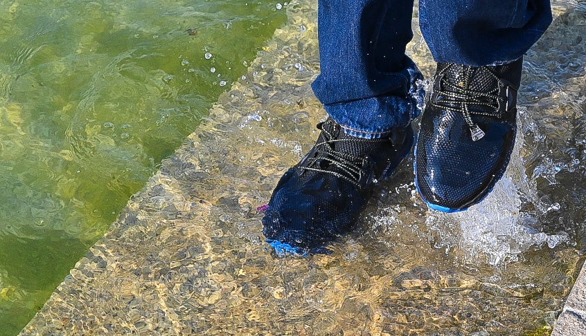 熱湯を注ぐテストでもシューズ内から外に放出されるのは蒸気だけ。水を通すことはありません。