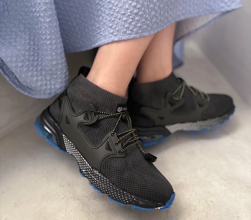 LIN-TEXは、甲高・幅広設計!伸縮性のある靴紐で、結ぶ手間なく足にフィットします。