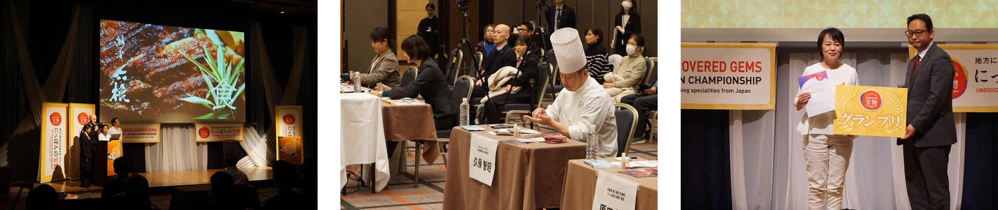 その成果発表として、地域大会、全国大会、世界大会(シンガポール)で商品選抜を行います。大会では、全国有名企業社長、有名シェフ、有名店バイヤー、インフルエンサーなどが集まり、日本の宝物にふさわしい商品を「品質評価」と「人物評価」の二軸で審査。受賞商品は、すぐにECサイトや有名店での販売につながり、売上が100倍になった事業者などを輩出してきました。全国に開催地域が拡大中。