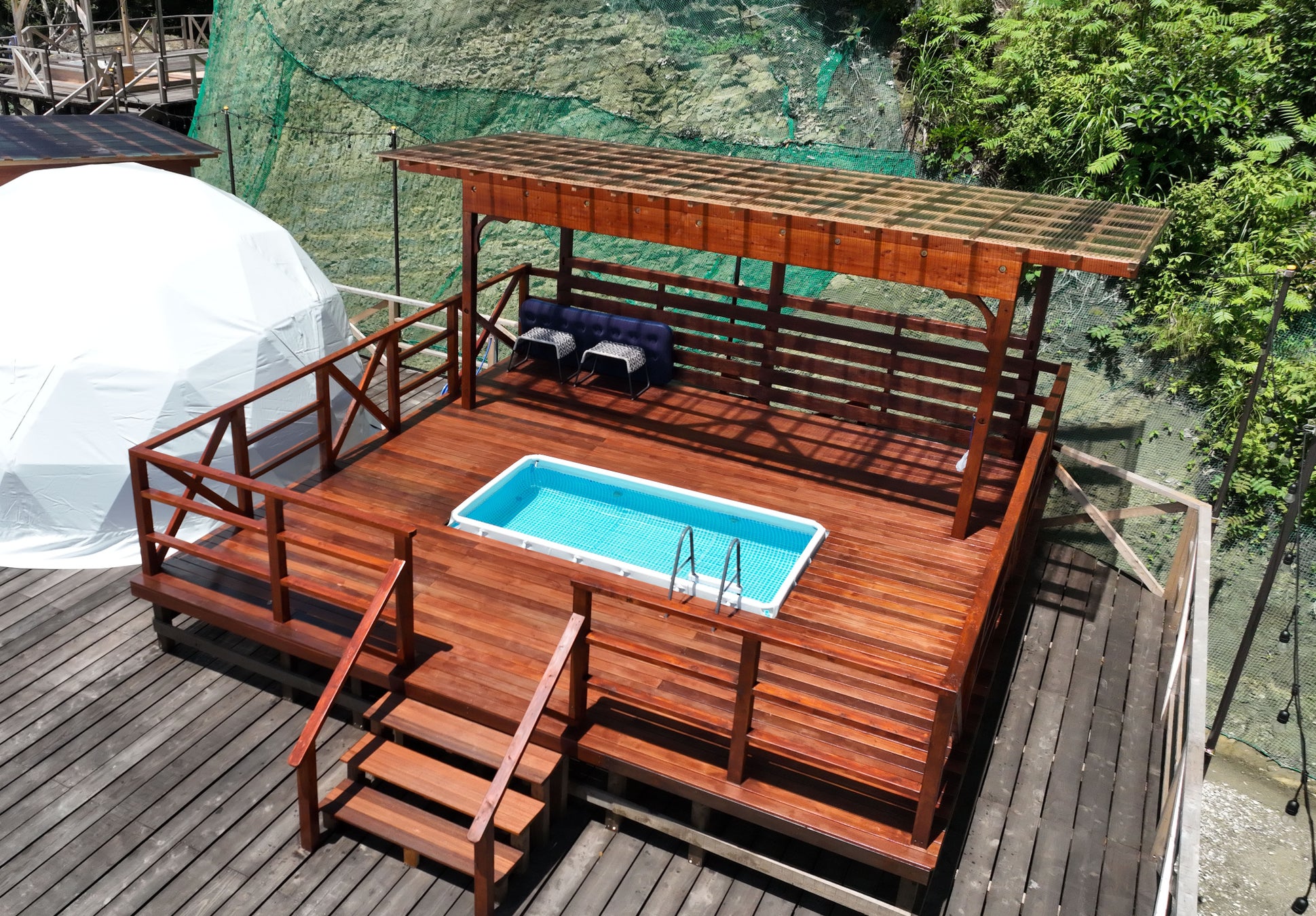 日本最大級の55平米2連ドームテント、ゲストルームとして2棟のドームテントが同ウッドデッキ上に立ち、 最大14名での宿泊も可能。この特別な空間からは、約20メートルの高さから見下ろすゴルフコースの壮大な景色と、自然を身近に感じる設計のプライベートサウナ・プールをお楽しみいただけます。春休みに家族や友人たちとの絆を深める、唯一無二の体験をキャメルゴルフ&リゾートでぜひご体験ください。