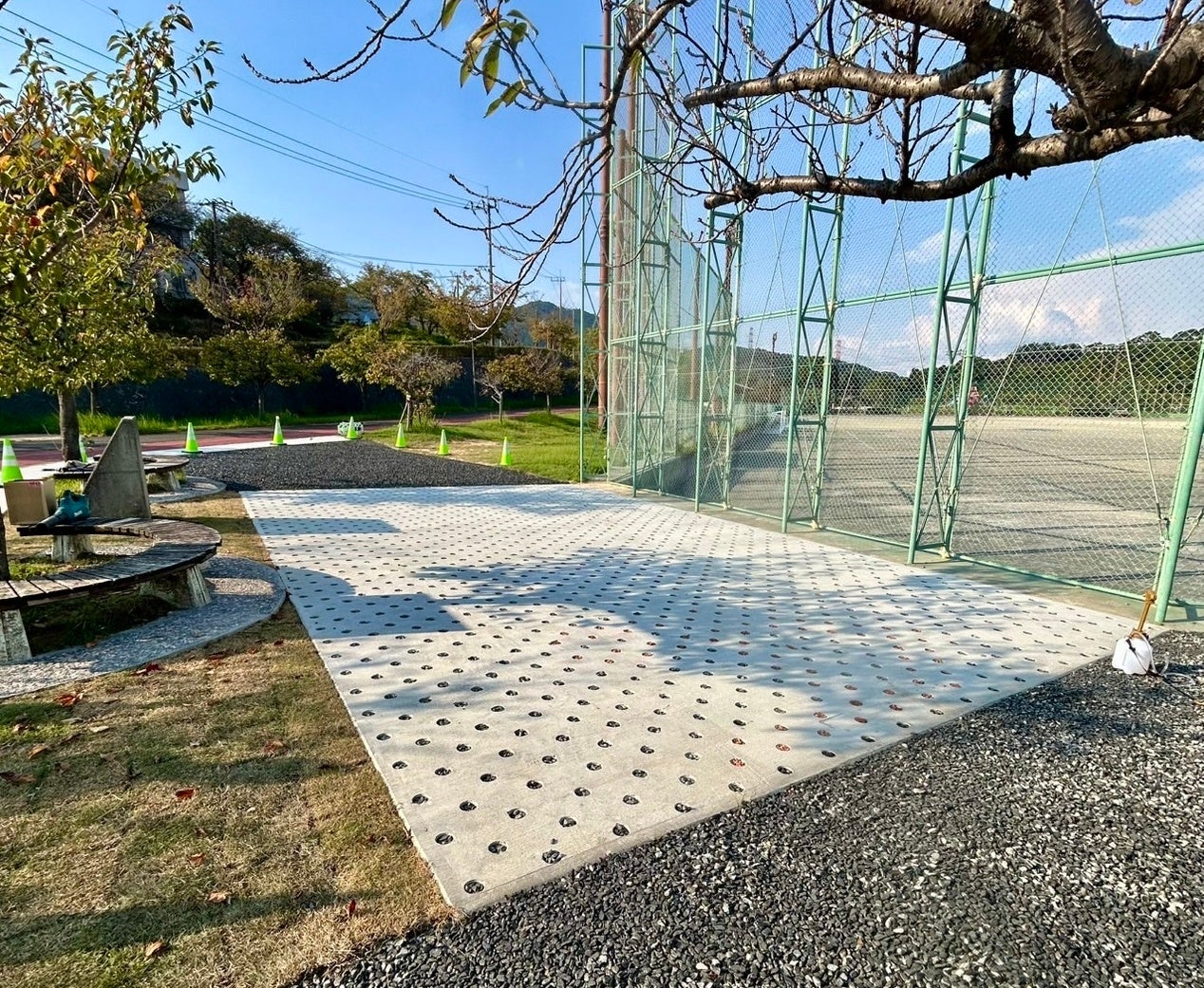 Dotconは、すでに佐賀県喜山町の国スポ(旧国体)競技場の修繕工事に採用され、雨水浸透性能が実証されています。