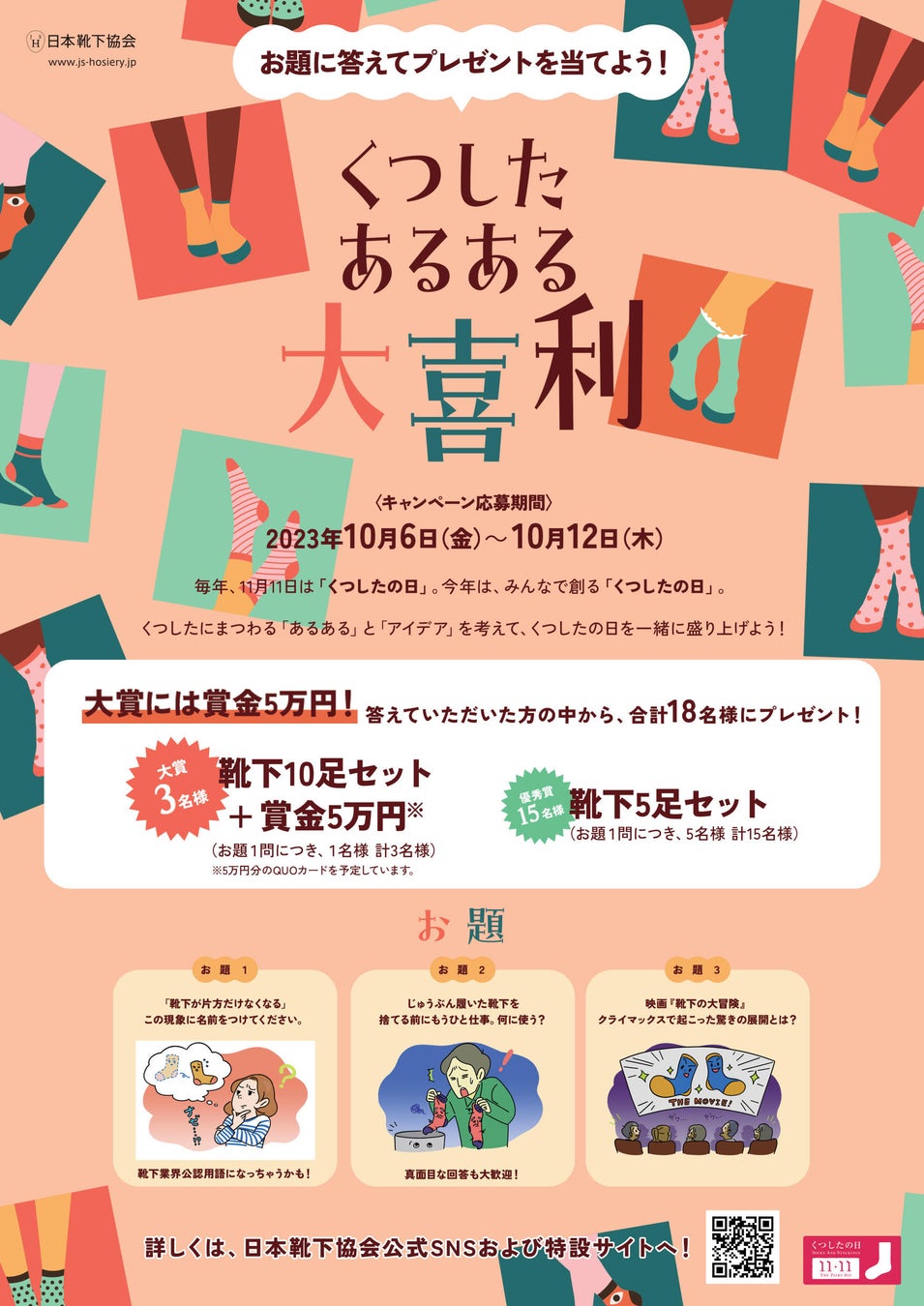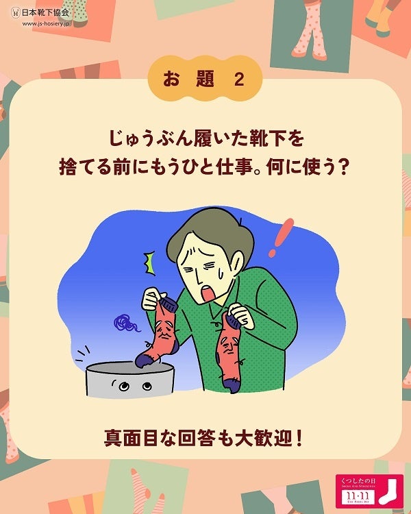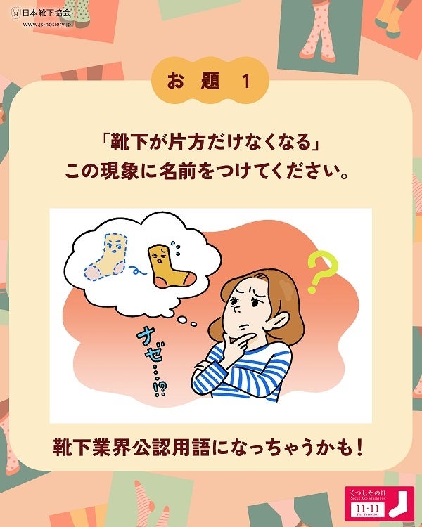 靴下協会の会員企業が競合の枠を超え一致団結し、本年は“みんなで創る「くつしたの日」”をテーマに「くつした あるある大喜利」キャンペーンを、下記要領にて実施いたします。