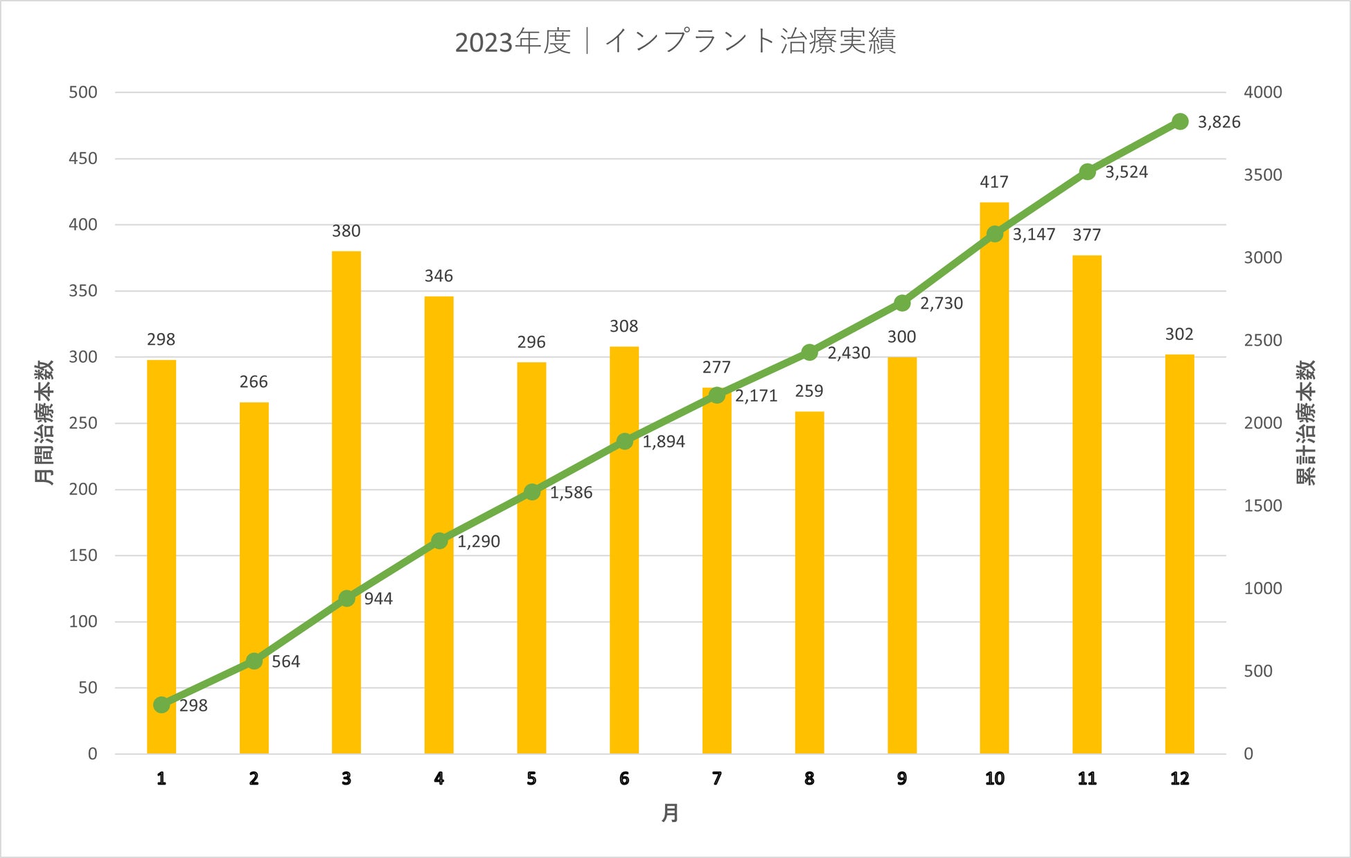 *1 2023年度のインプラント治療本数の実数値(月別)