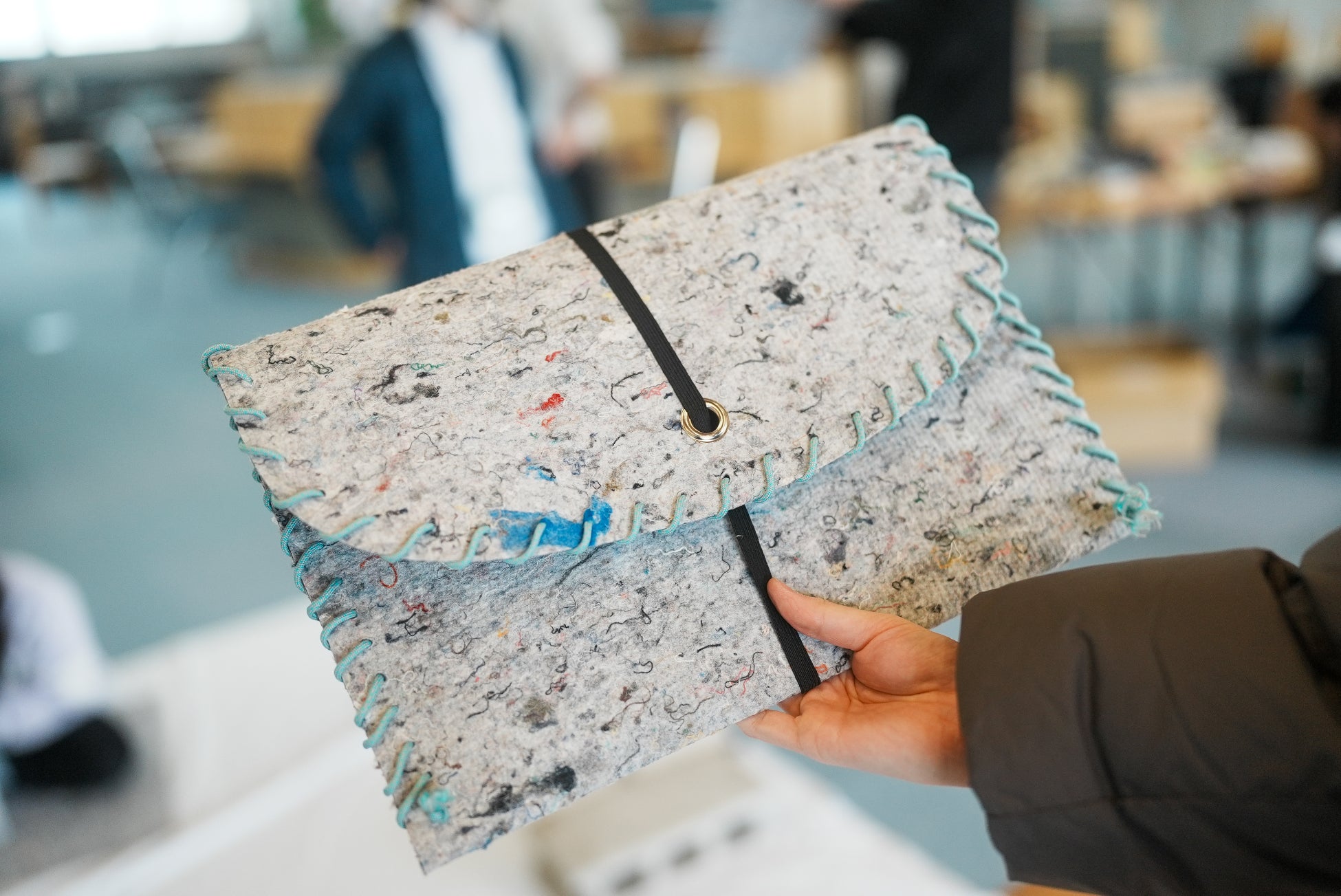 ワークショップでは実際に海士町の古着から作られたRebornfiber®に触れながら、普段の生活で使えるプランターバッグやPCケースなどのものづくりにチャレンジしました。Rebornfiber®1mm厚はほぼ布と同様な薄手の生地であるため、ハサミやカッターなど身近な道具を使って制作します。