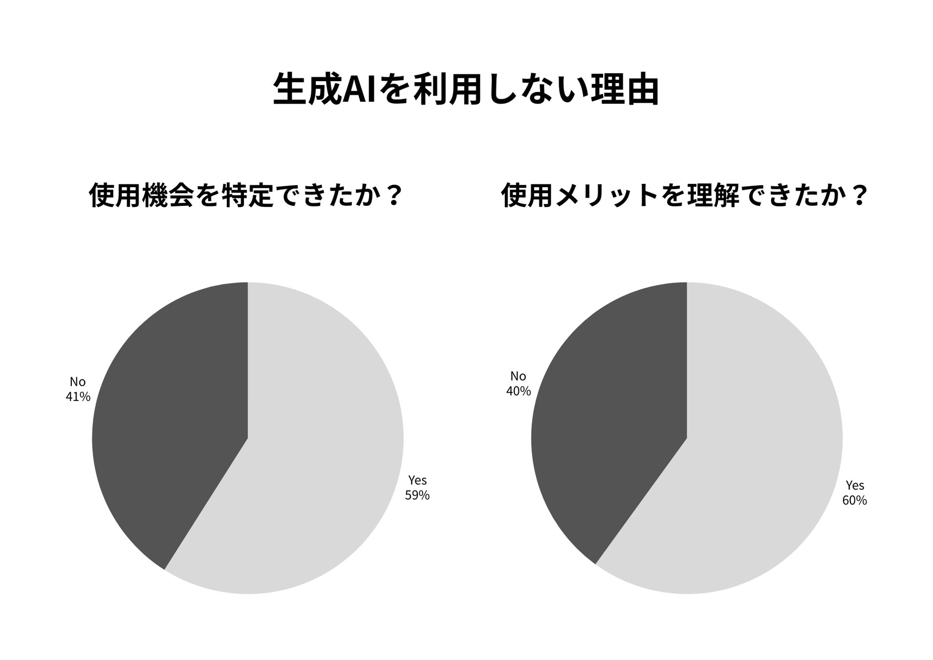 さらに深刻なのは、AI未導入企業の41%が具体的な活用シーンを想像できず、40%がビジネスメリットを認識していない現状です。特にコピーライティングや業務効率化など、即効性の高い活用領域での理解が不足しています。