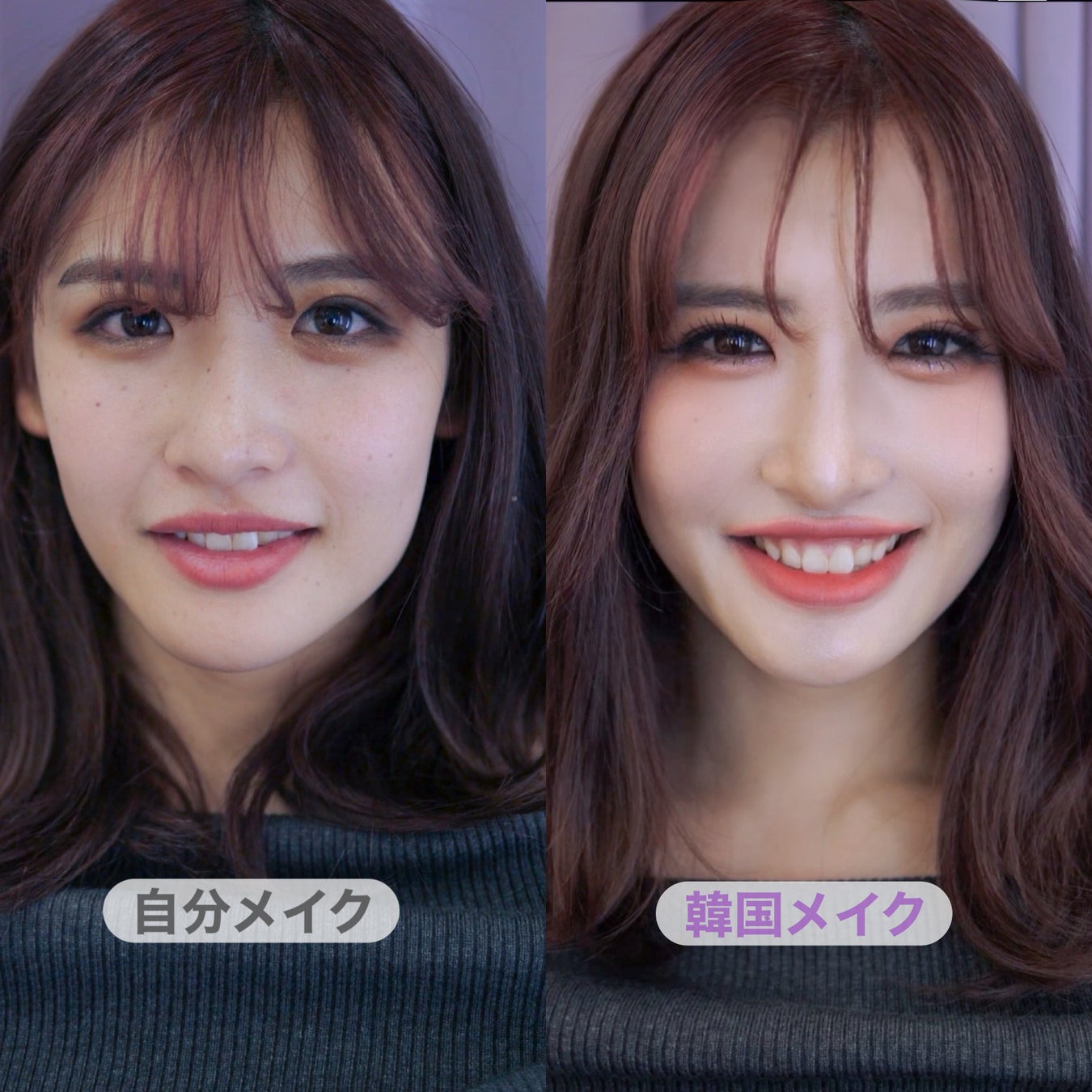 これがプロの技!! 自分メイクと月下韓国メイクの比較。