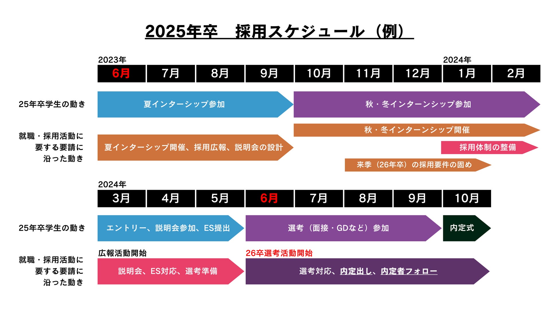 2023年度には、産学協議会からの要望を受けた経団連が、インターンシップに参加した学生の情報を採用活動に利用することを認めたことにより、就職活動の早期化と長期化が加速することが予想されます。