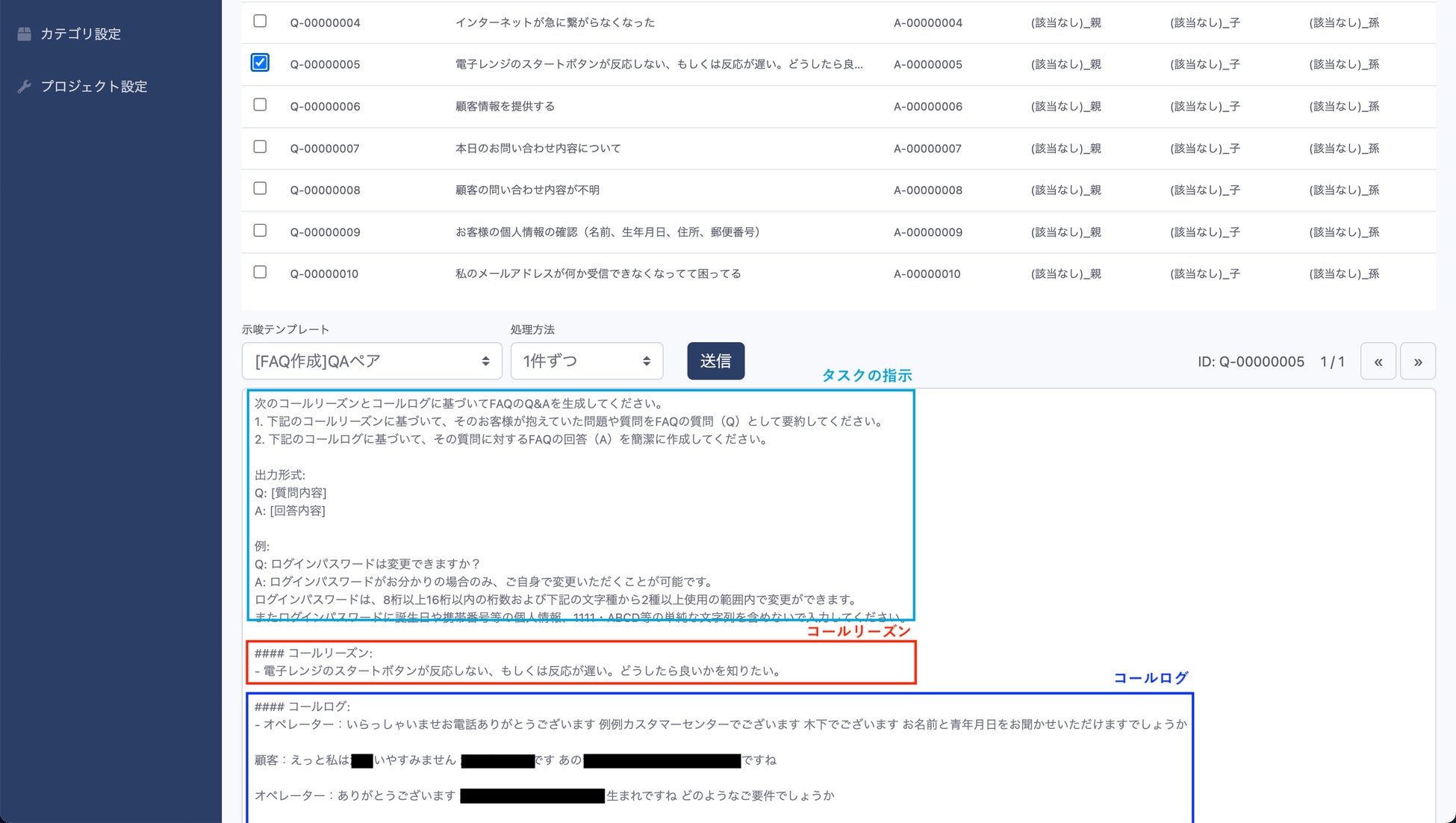 こういったご意見を受け、コールログからの質問文作成に加えて、回答文も自動で作成する機能を追加することで、FAQ作成業務のさらなる効率化を実現いたしました。