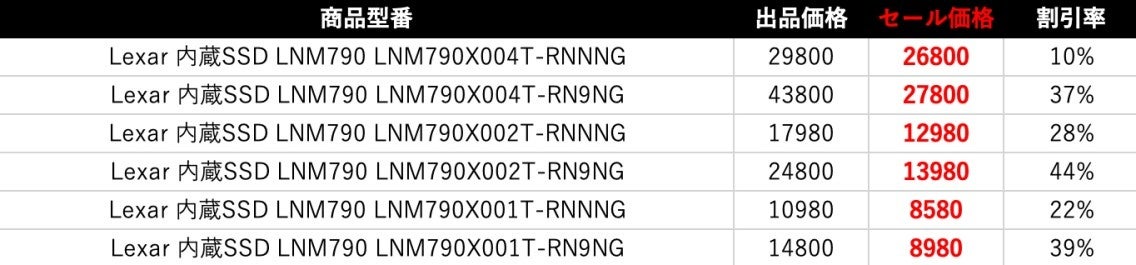 Lexar 内蔵SSD LNM790:https://www.amazon.co.jp/dp/B0CHRGQD9N?ref=myi_title_dp&th=1