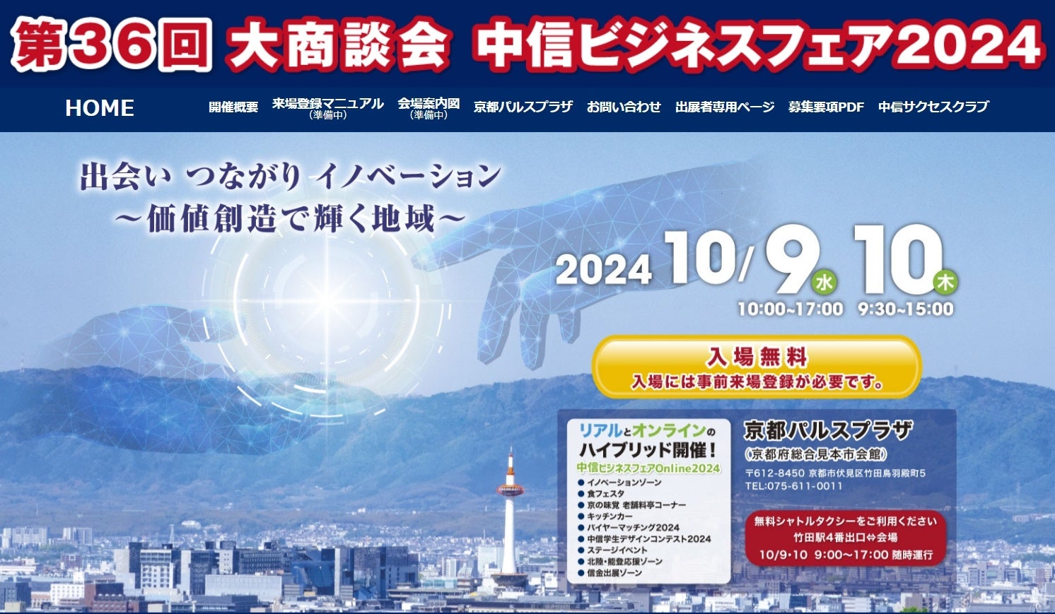 2024年10月9日~10日に京都府総合見本市会館(京都パルスプラザ)で開催される「中信ビジネスフェア2024」に、株式会社Ready ONが出展いたします。